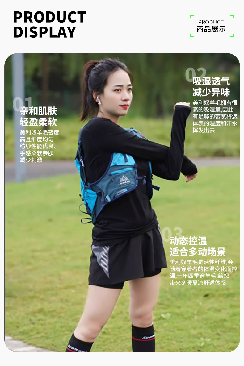 灰壳美利奴羊毛速干衣户外女保暖排汗长袖美丽诺运动功能内衣打底