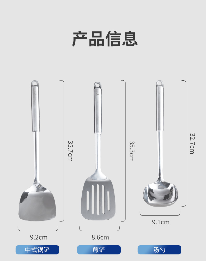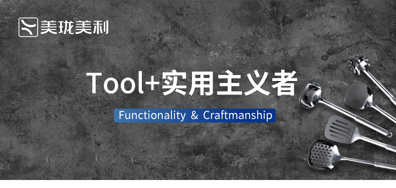 美珑美利TOOL+中式锅铲炒菜食品级304不锈钢家用厨房漏勺汤勺