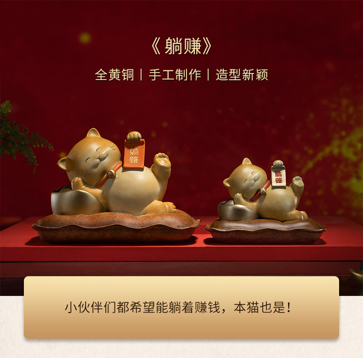 铜师傅 全铜摆件《躺赚》 铜工艺品 家居饰品 礼品 招财猫摆件