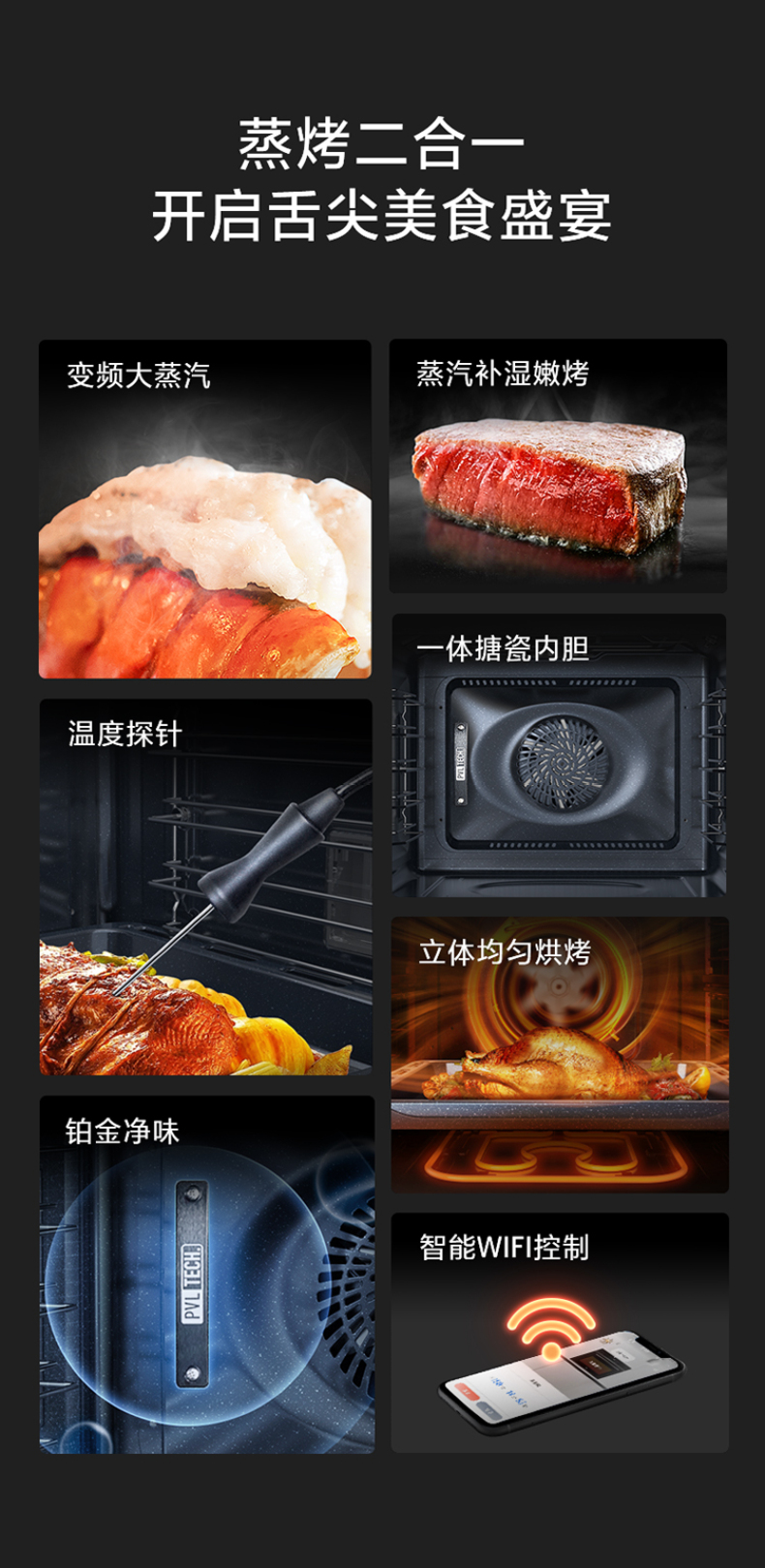 COLMO嵌入式蒸烤箱搪瓷内胆 高端72L大容量 智能云食谱 PVL净味系统ET1470TR-01SE