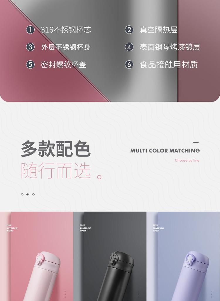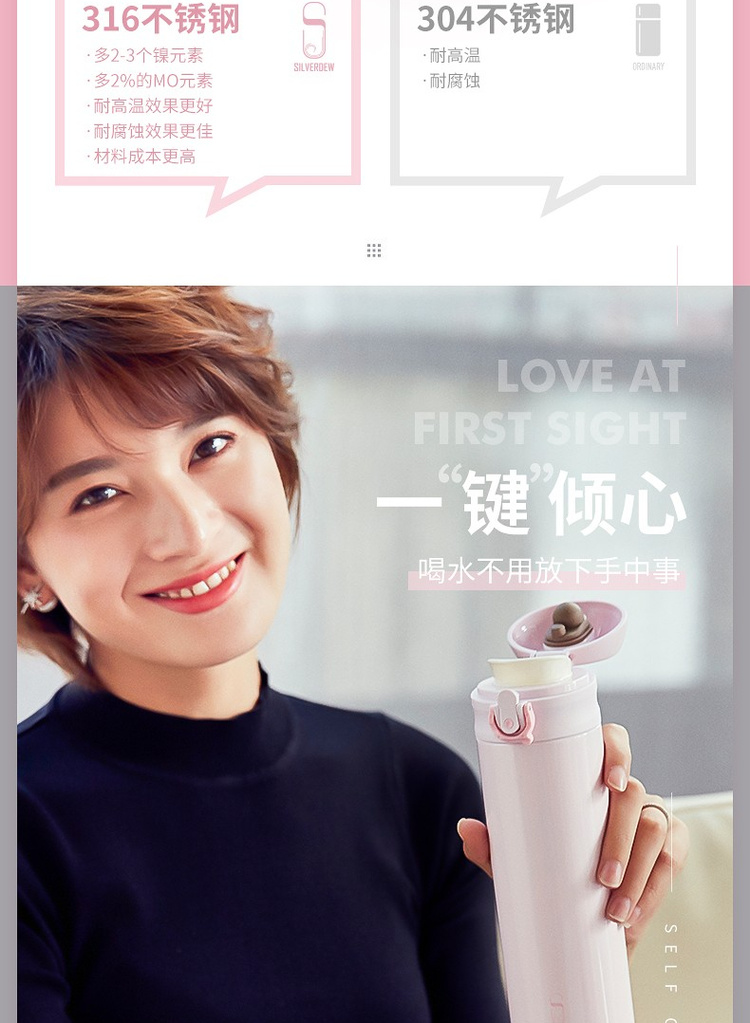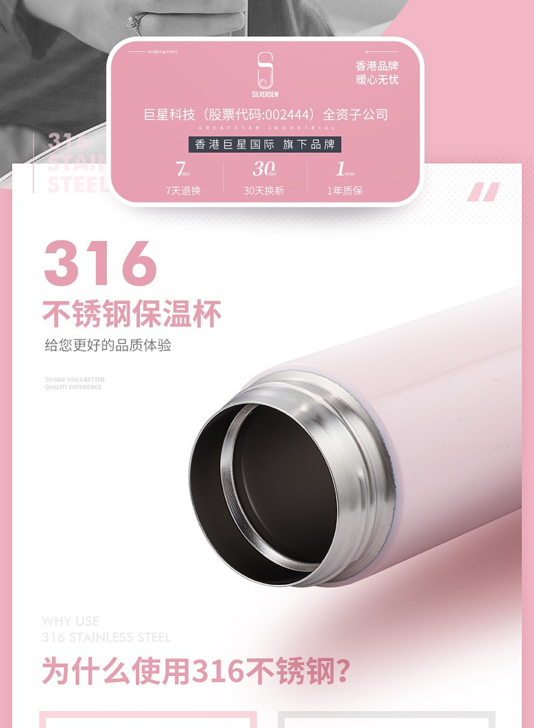 诗芙迪(SILVERDEW) 316不锈钢保温杯男女随手杯运动水杯品味480ml