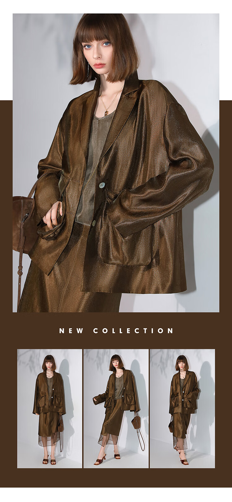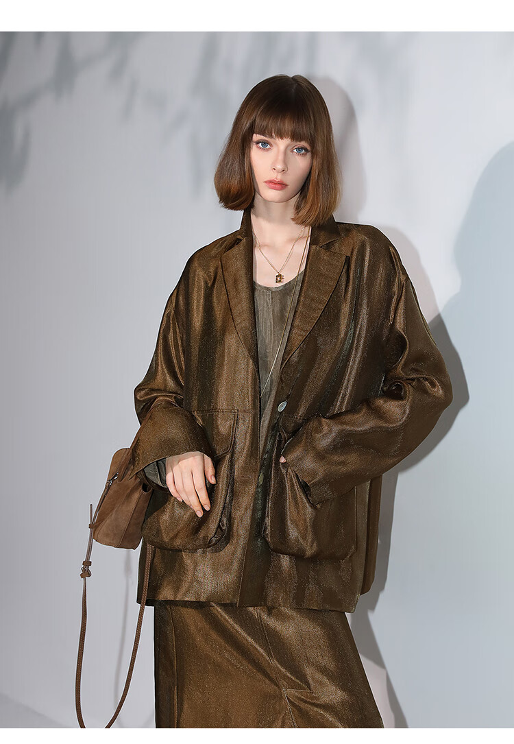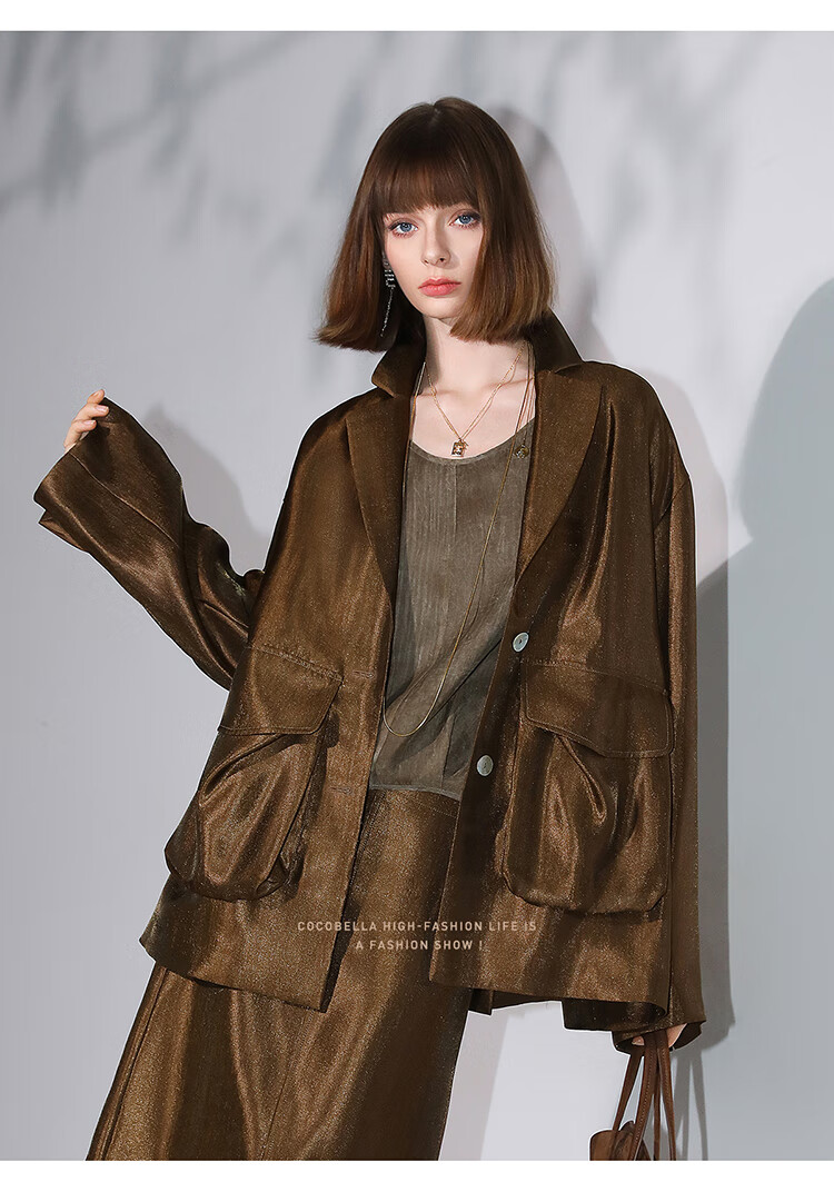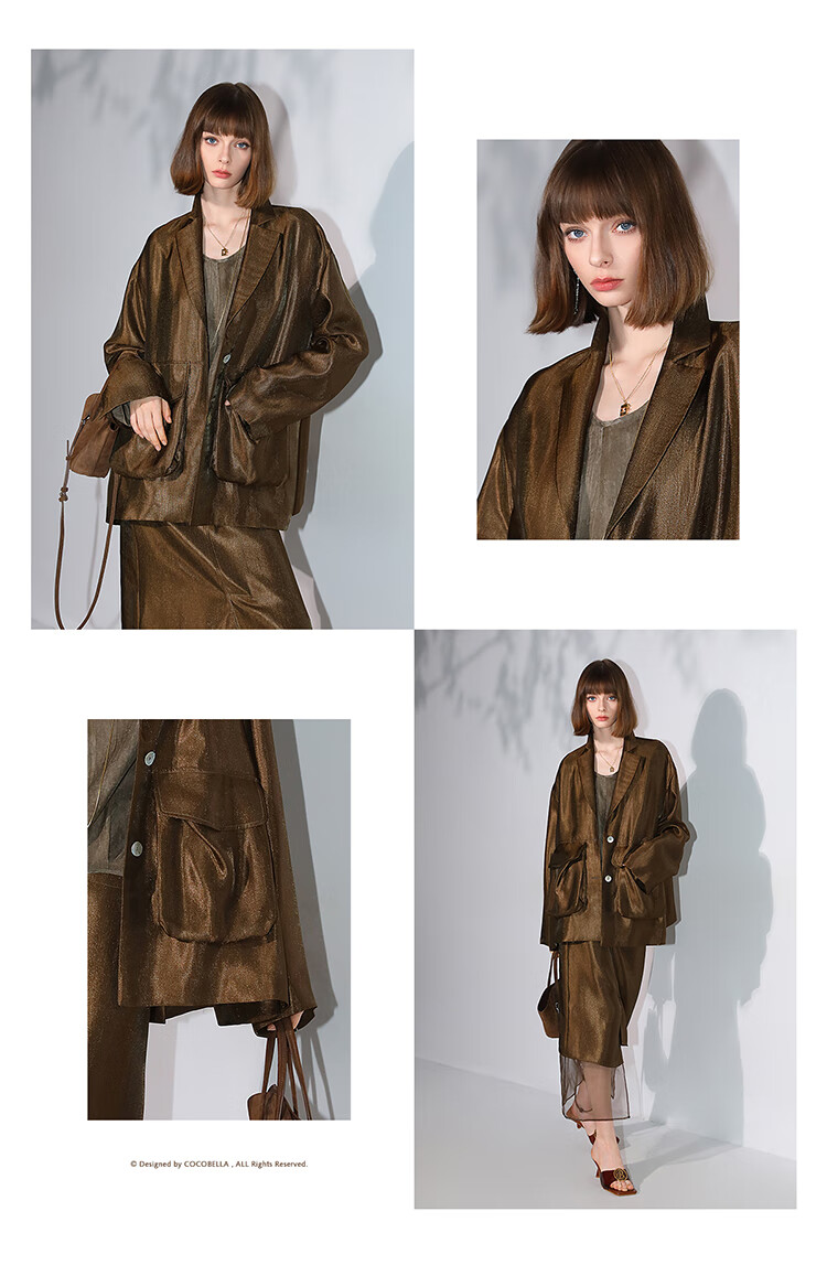 COCOBELLA奢感珠光轻奢人丝西装秋立体口袋松弛感西服外套SI3027-2