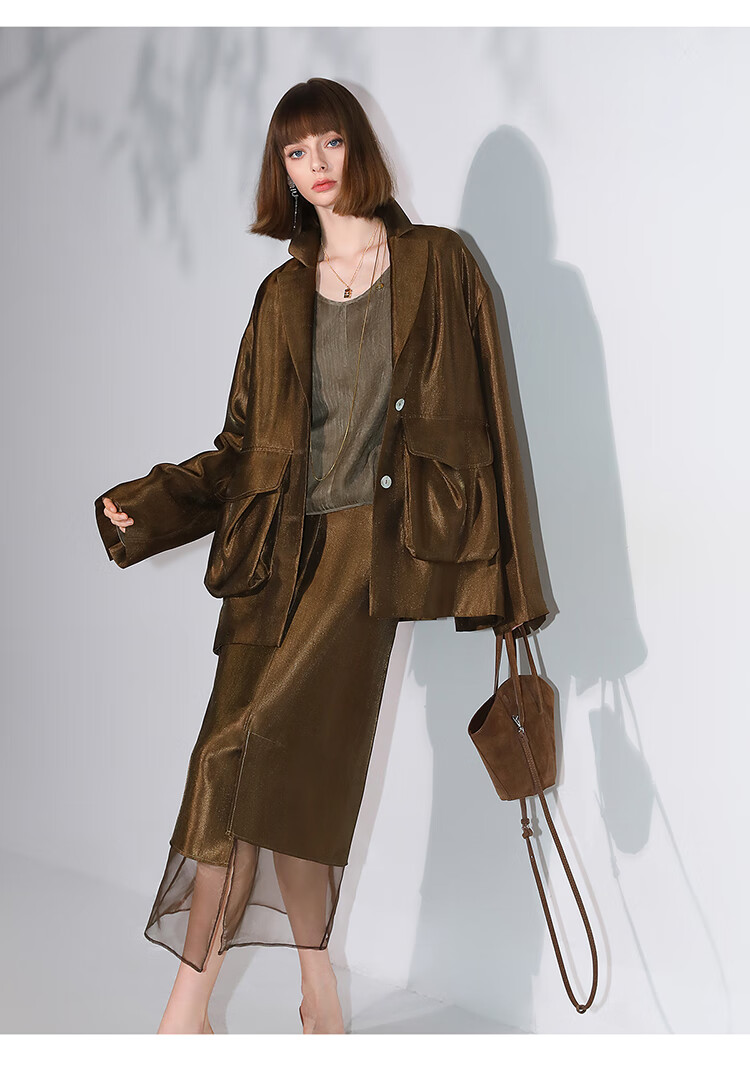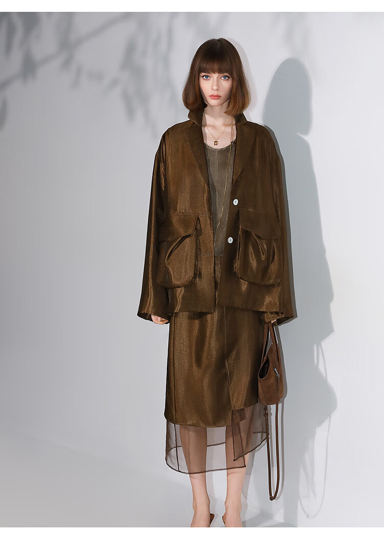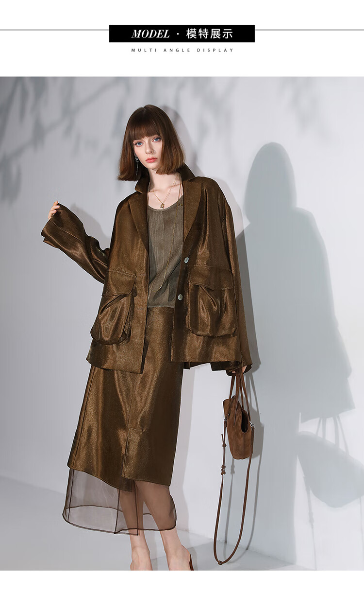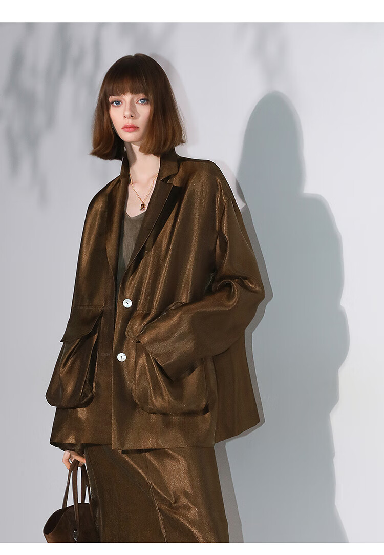 COCOBELLA奢感珠光轻奢人丝西装秋立体口袋松弛感西服外套SI3027-2