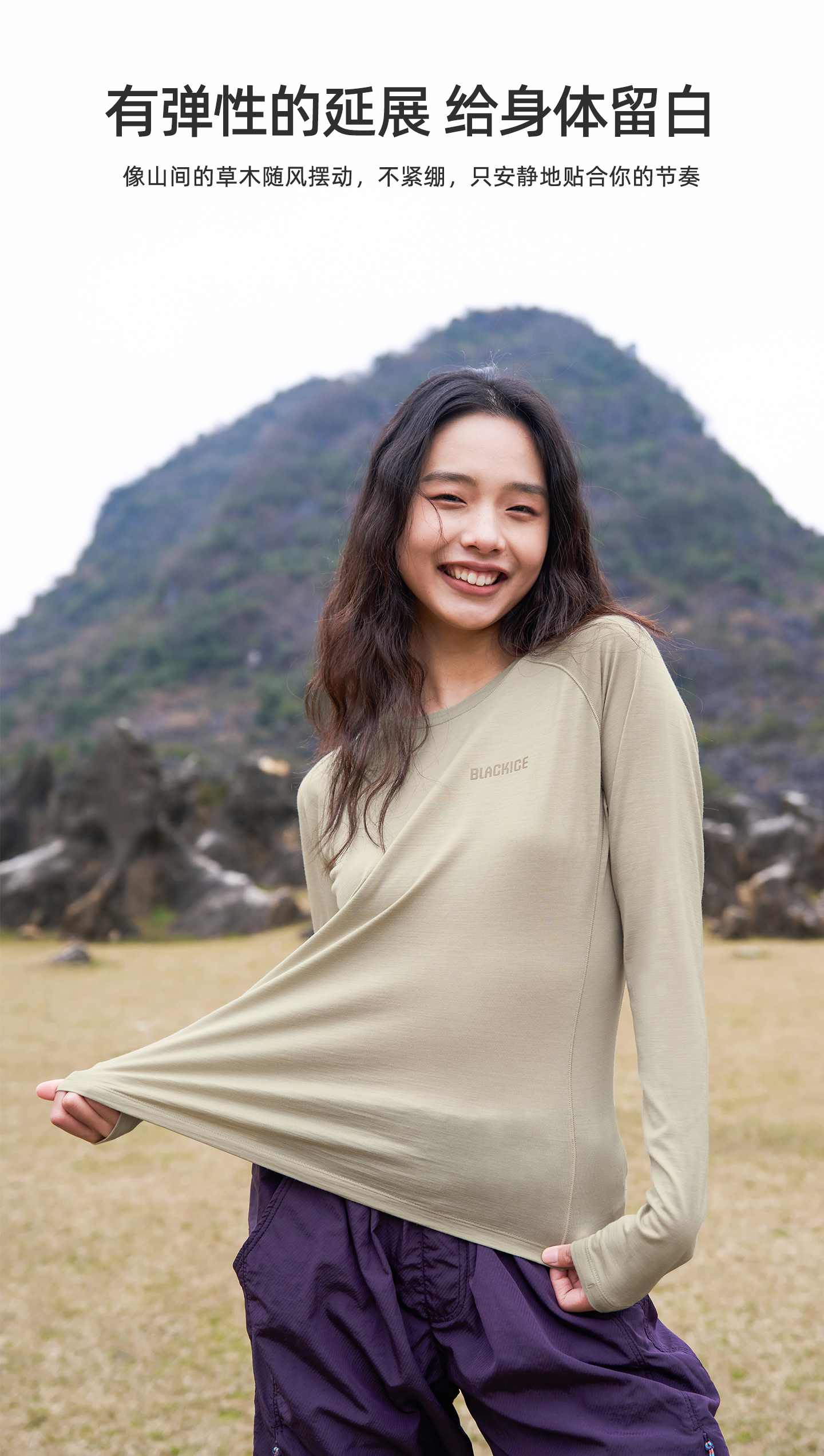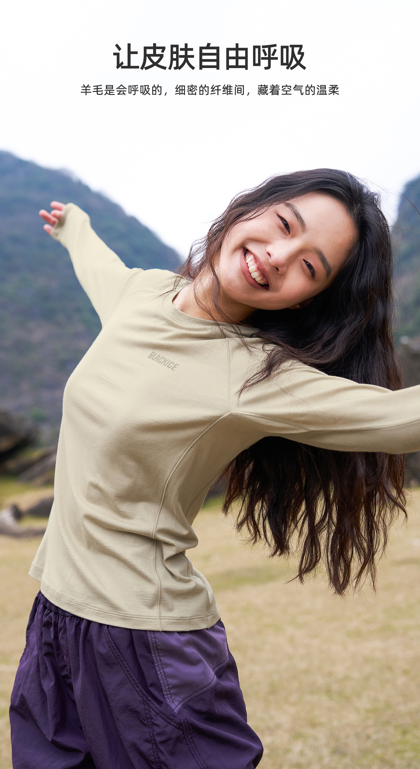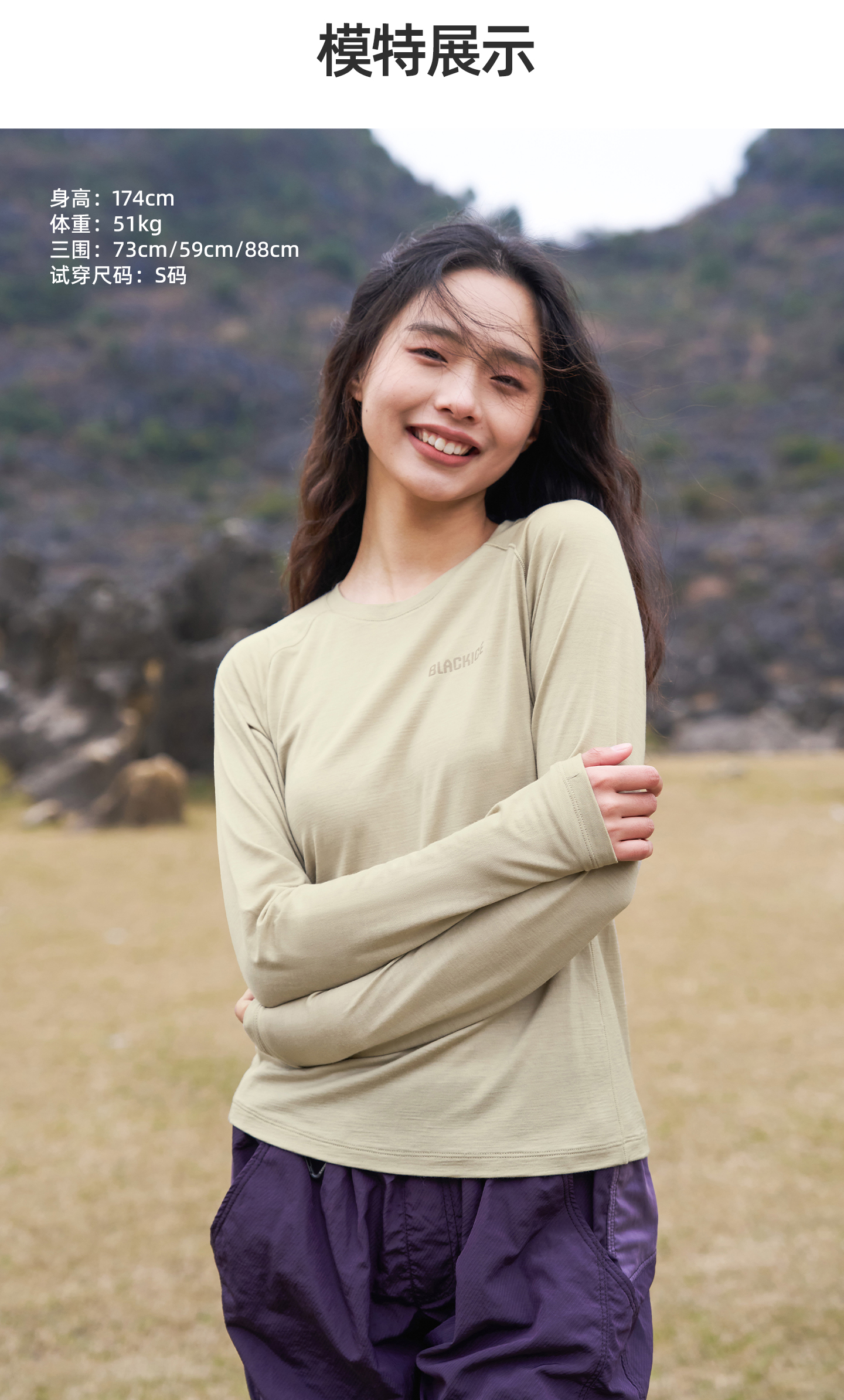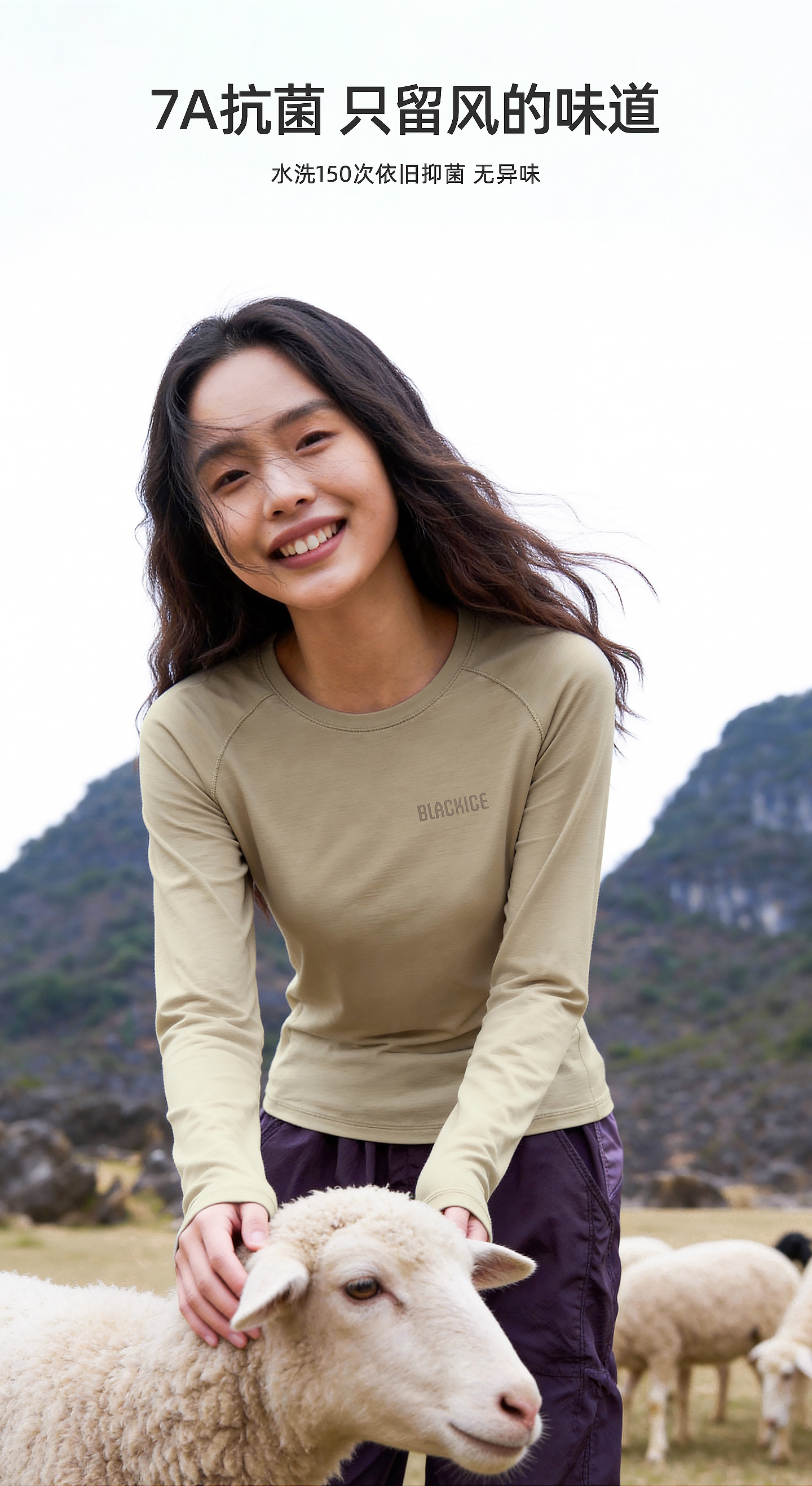 黑冰美利奴羊毛上衣长袖春季户外徒步登山轻薄透气运动t恤3606