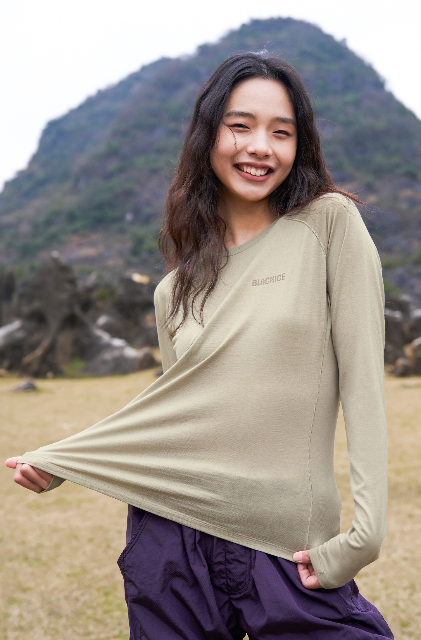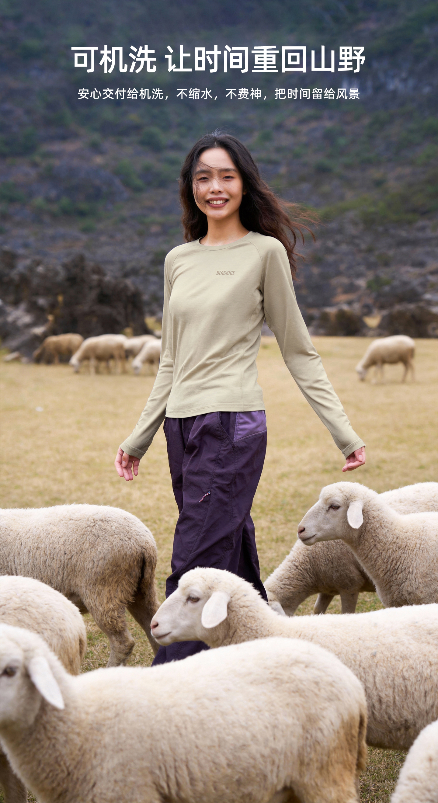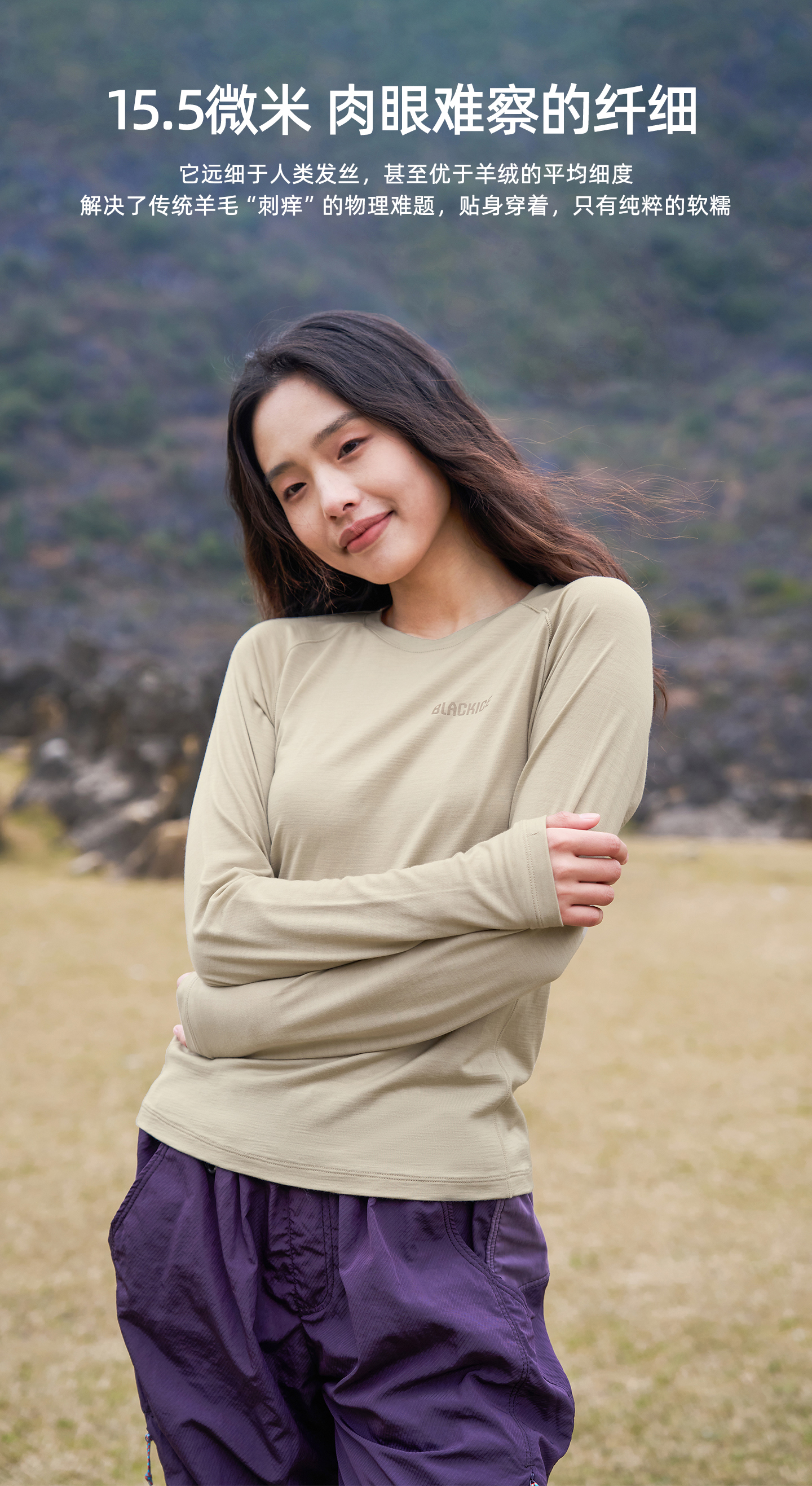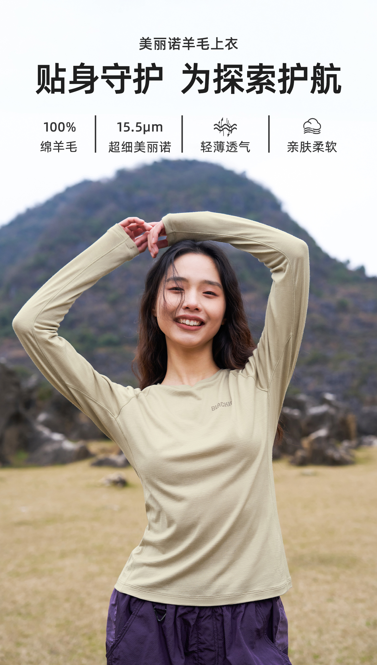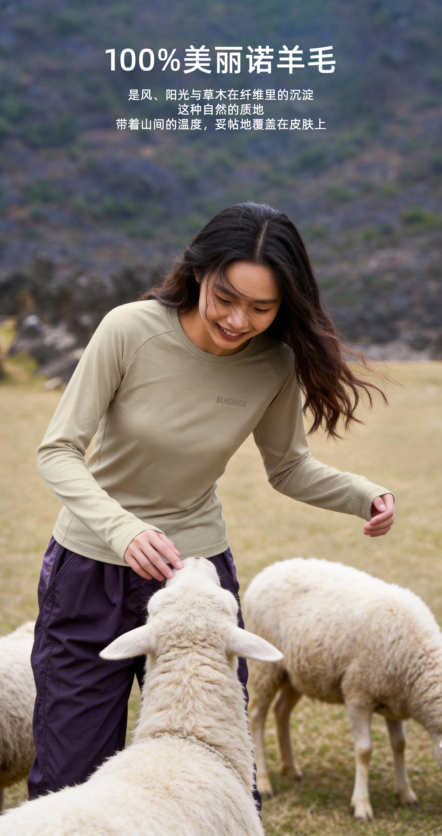 黑冰美利奴羊毛上衣长袖春季户外徒步登山轻薄透气运动t恤3606