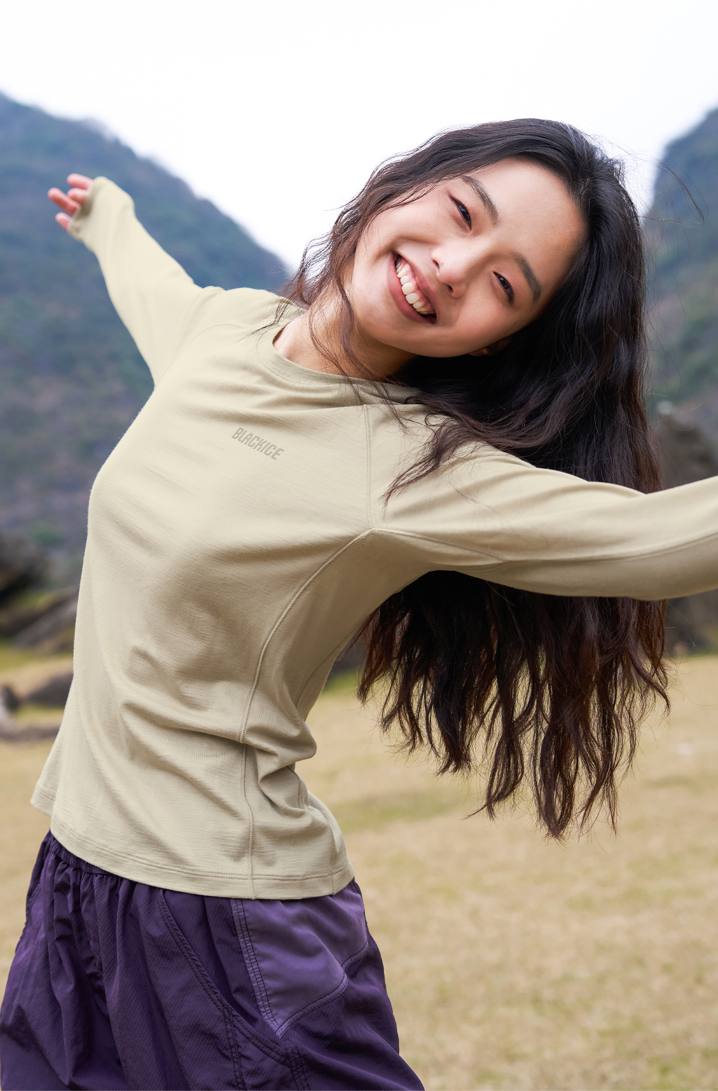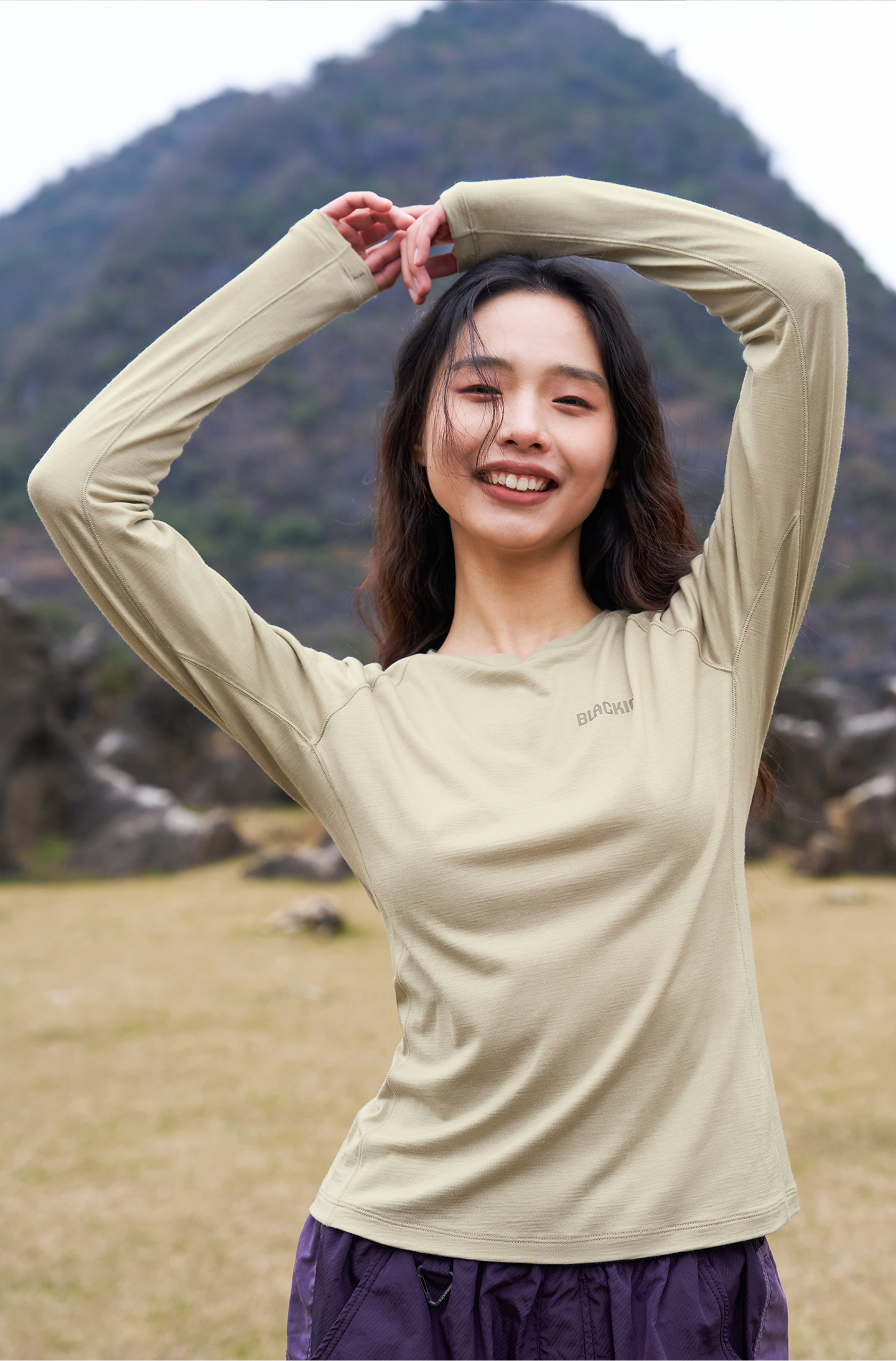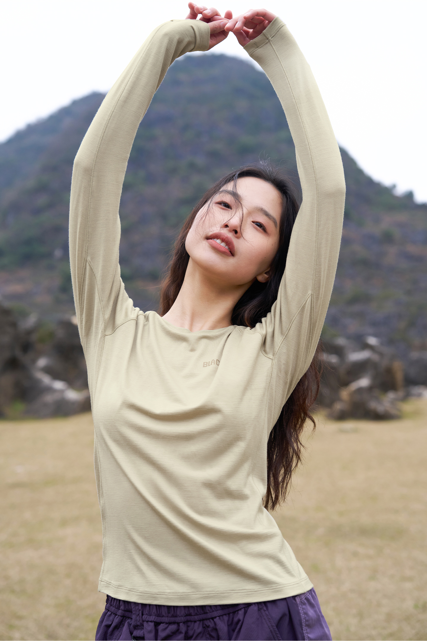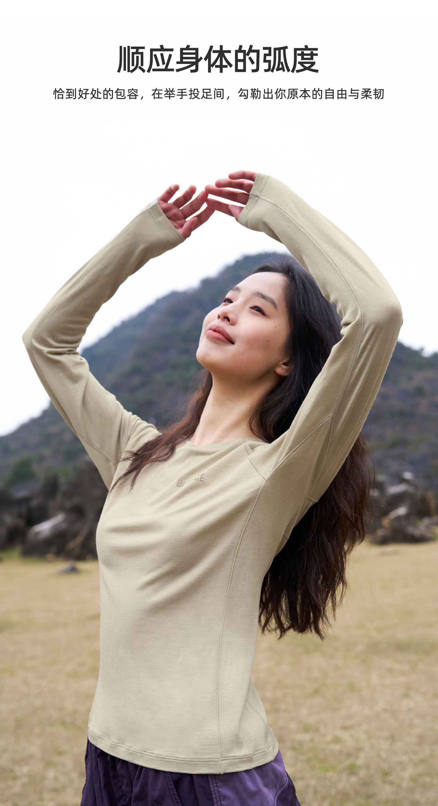 黑冰美利奴羊毛上衣长袖春季户外徒步登山轻薄透气运动t恤3606