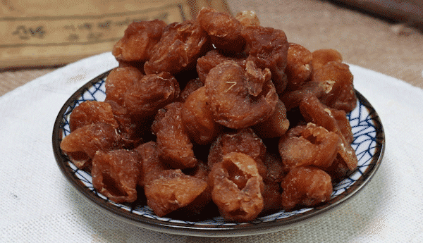 新鲜桂圆肉是白色的,桂圆干是微黄微红,桂圆肉蒸到12个小时的时候,甜味消失开始越蒸越苦,桂圆肉颜色变黑。