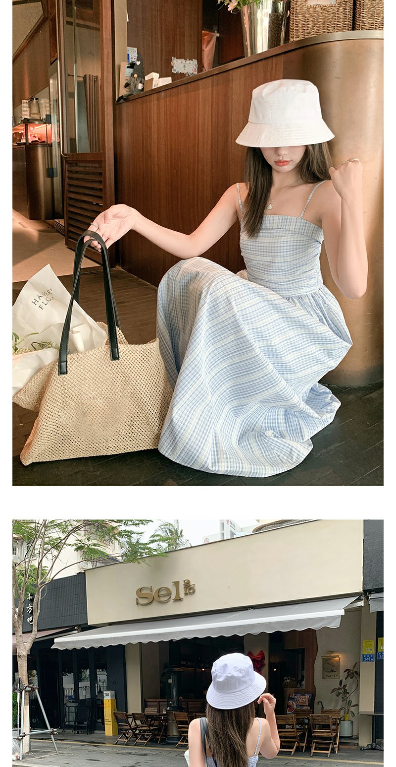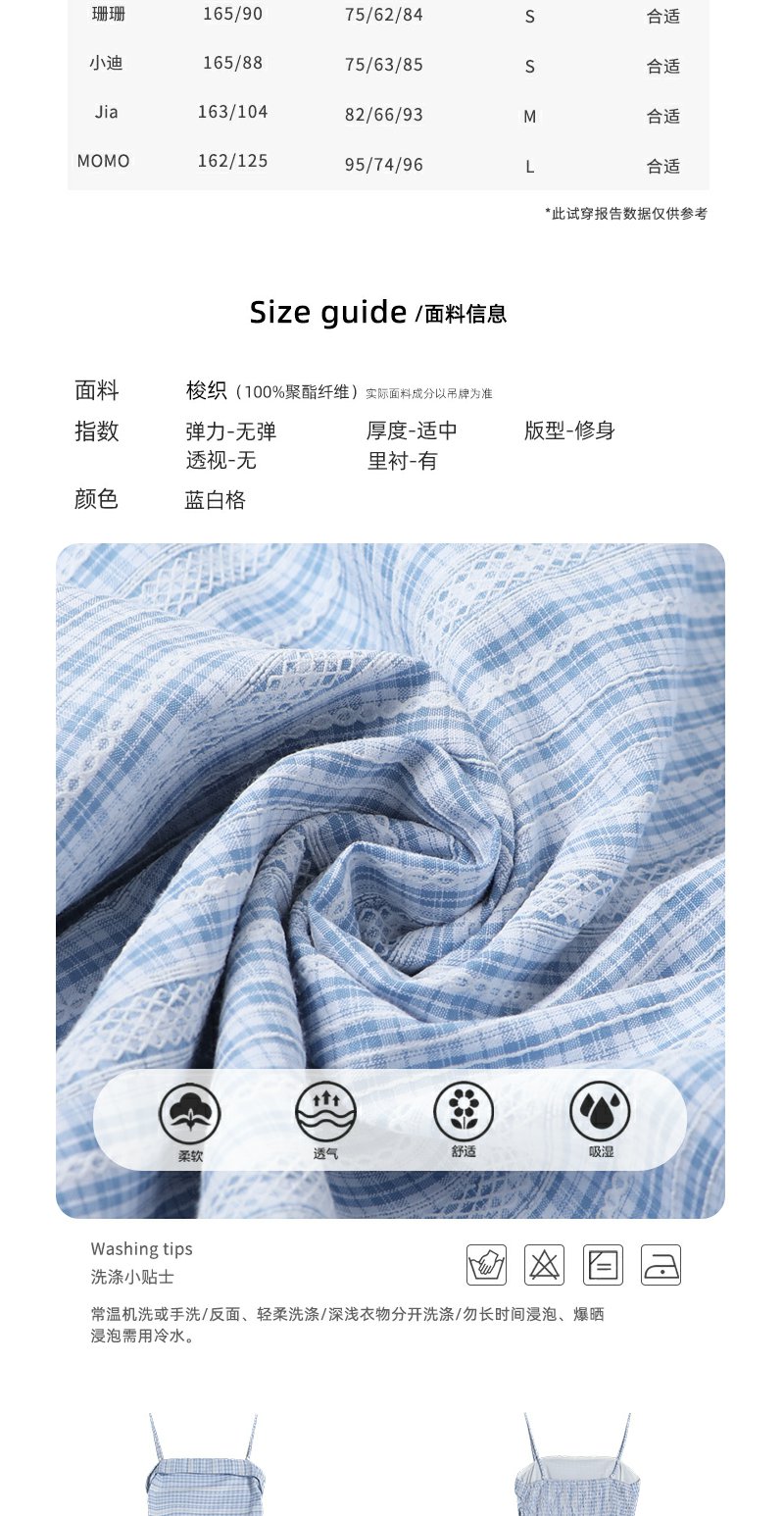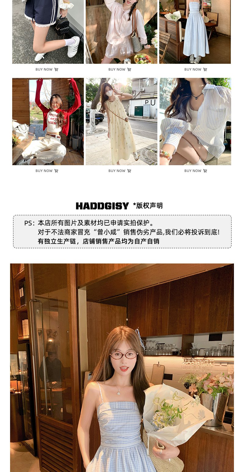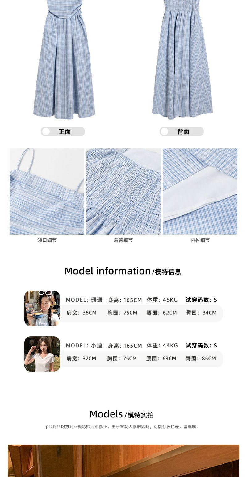 <曾小咸推荐>蓝白格吊带长裙收腰显瘦连衣裙
