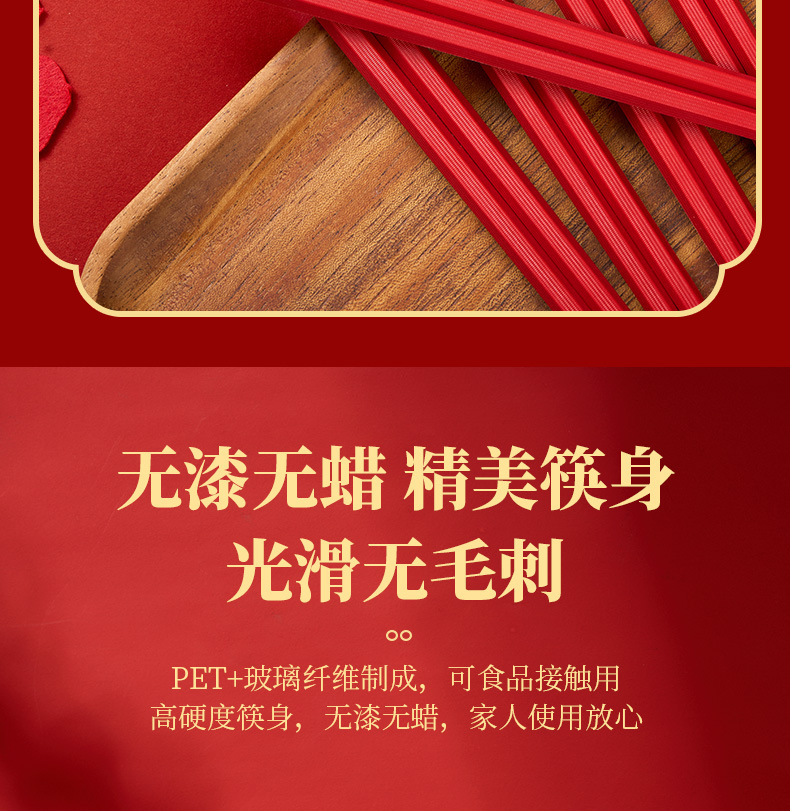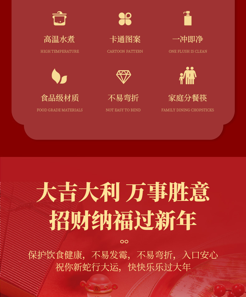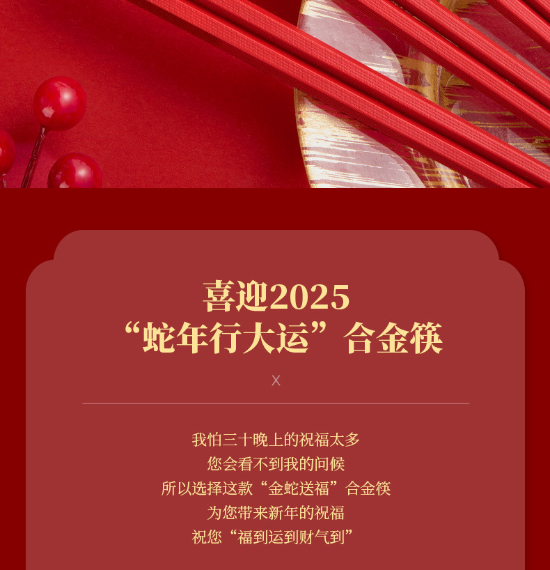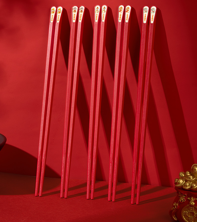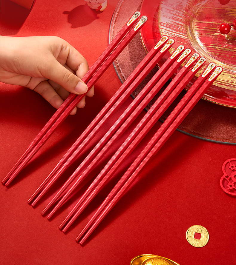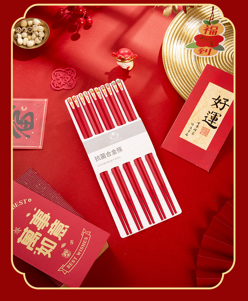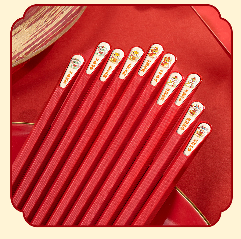 「五双装!新年祝福筷」客满多合金筷子2025新年筷子高颜值家用分餐筷耐高温红色蛇年快子餐饮用具