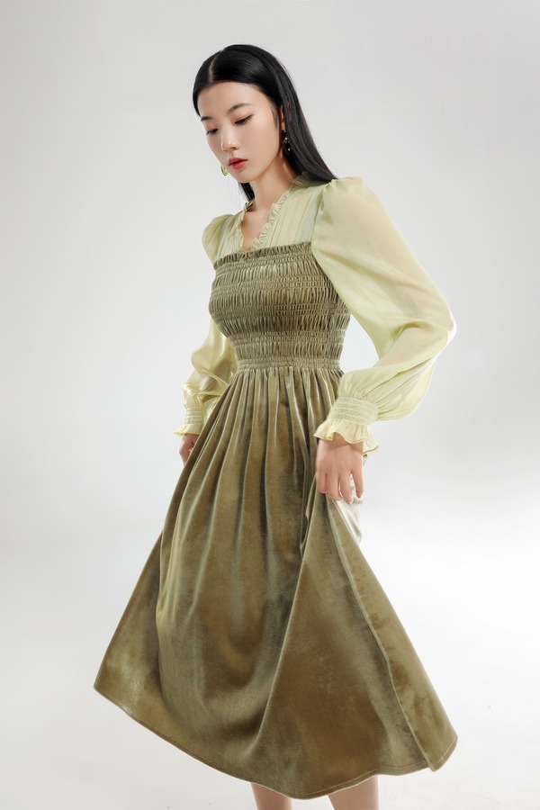 L.Fleuri 复古V领法式茶歇连衣裙 17808