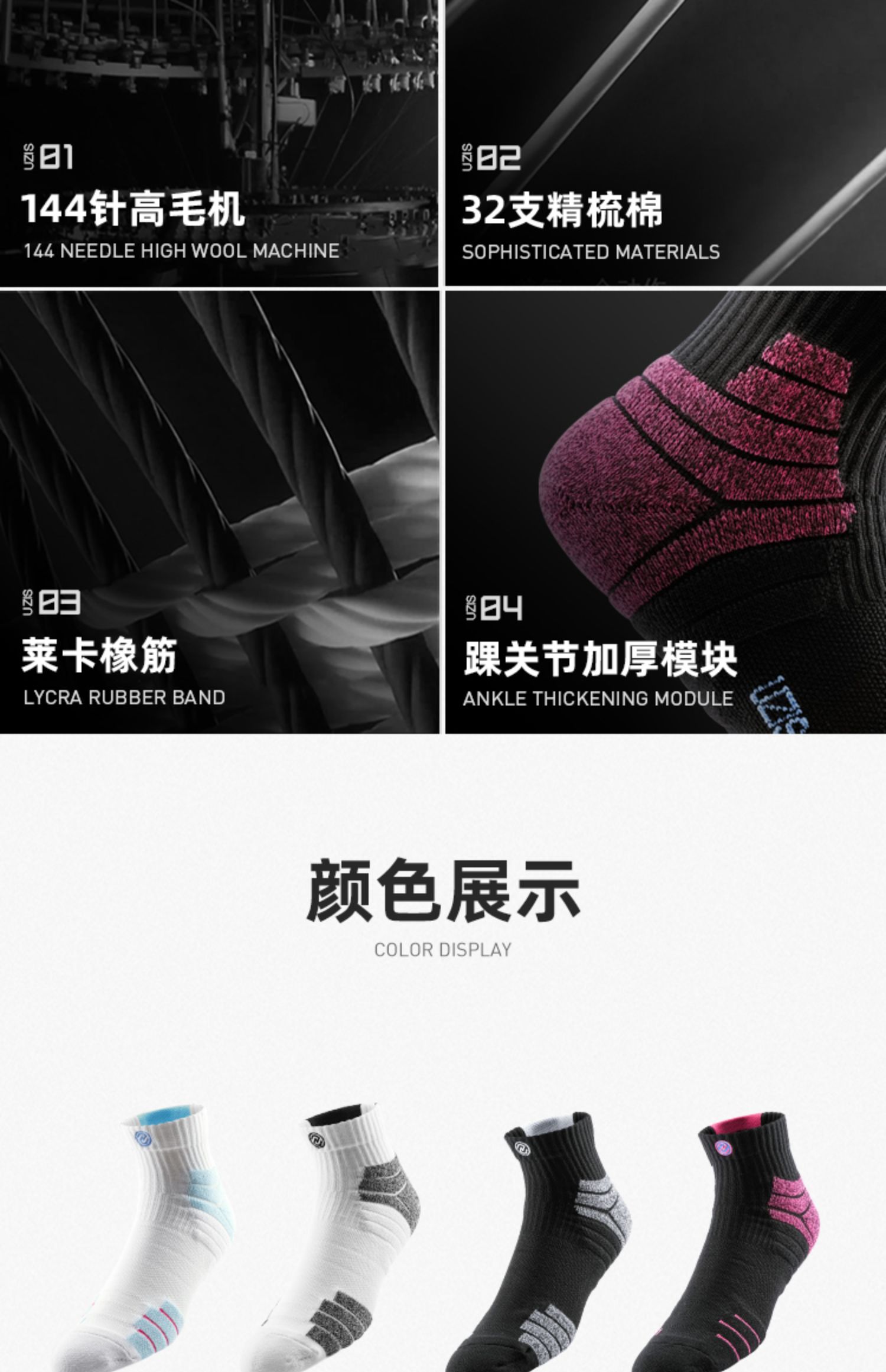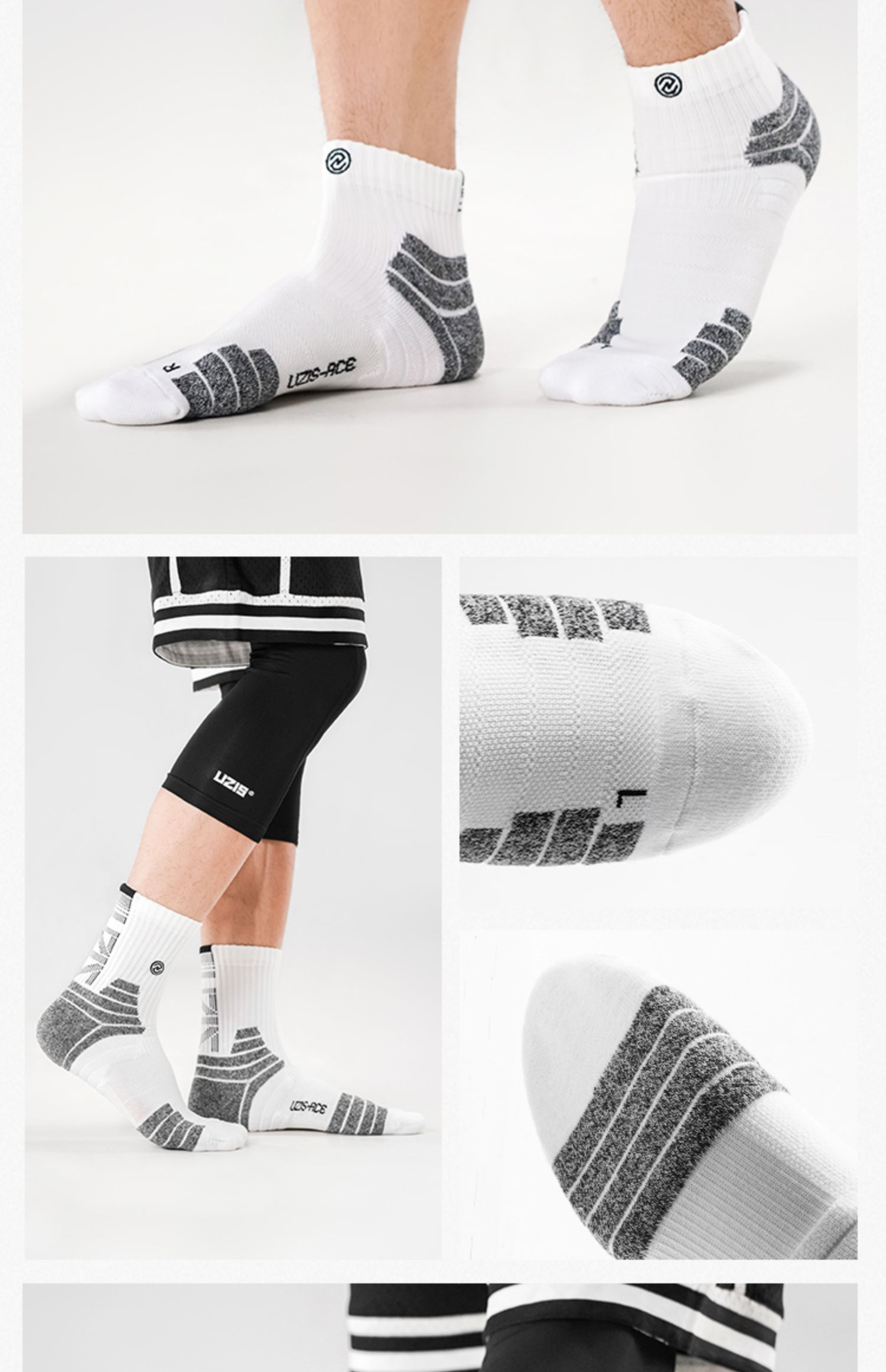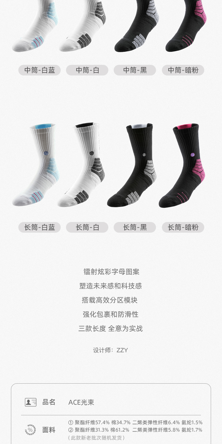 ACE综合级 UZIS专业篮球袜男长筒实战精英袜高帮毛巾运动袜[光束]
