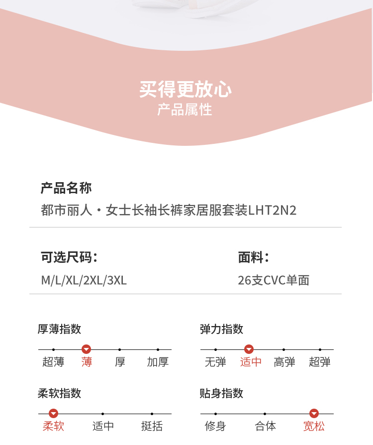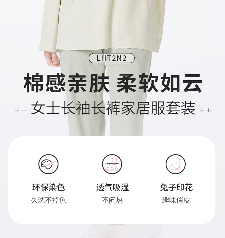 都市丽人睡衣生活家居长袖家居服26支CVC单面薄女士棉质套装LHT2N2