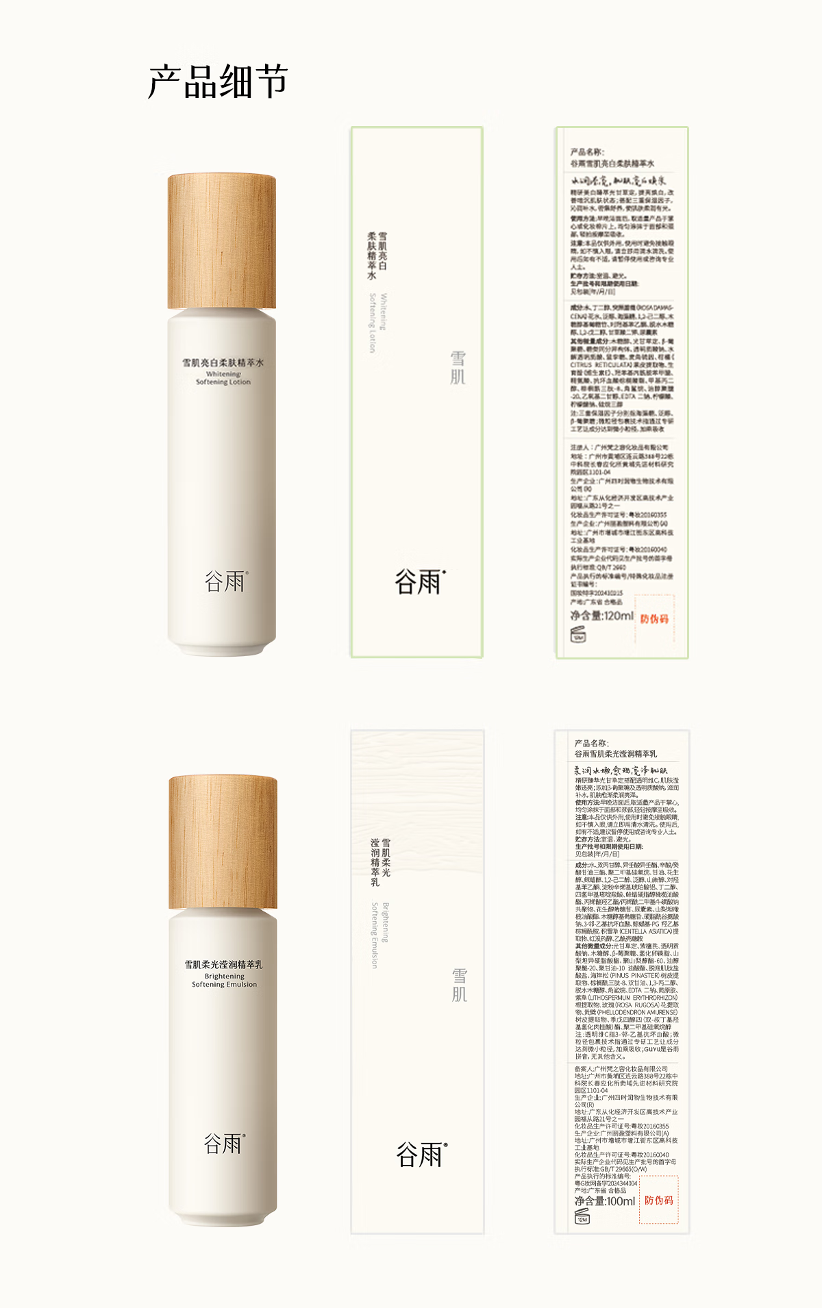 谷雨第三代雪肌水乳套装 美白提亮补水保湿护肤品 100017784992