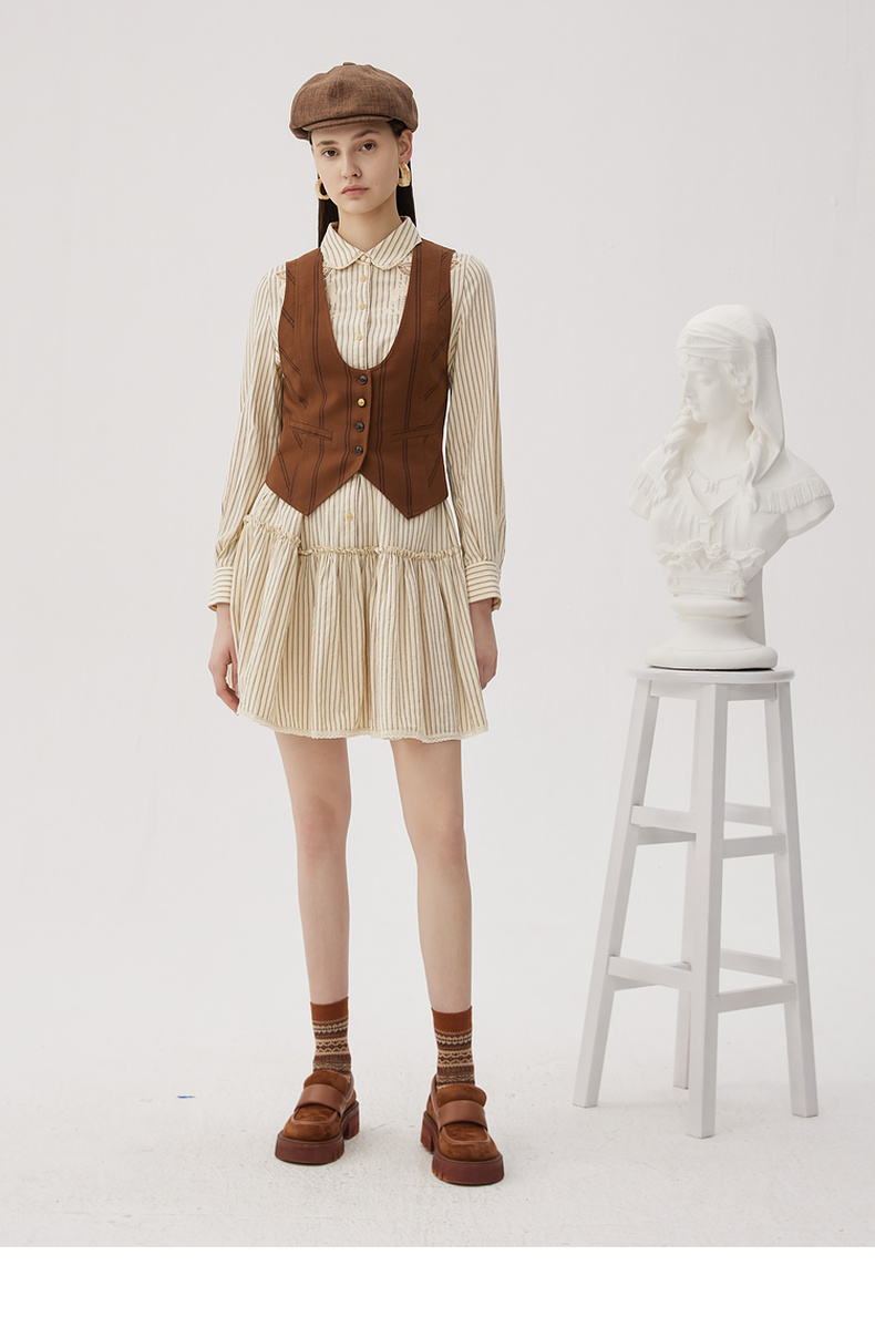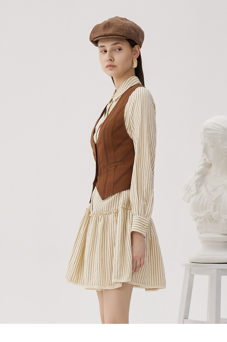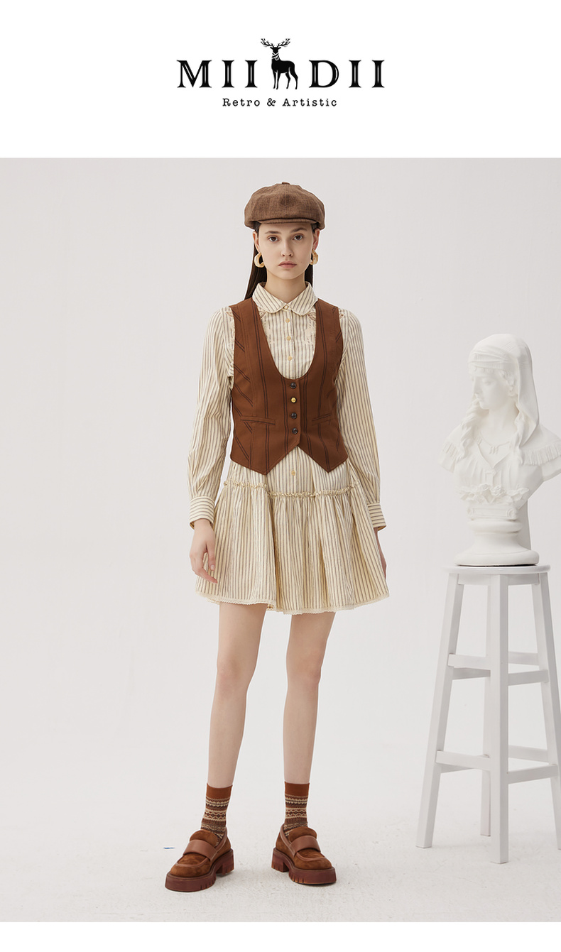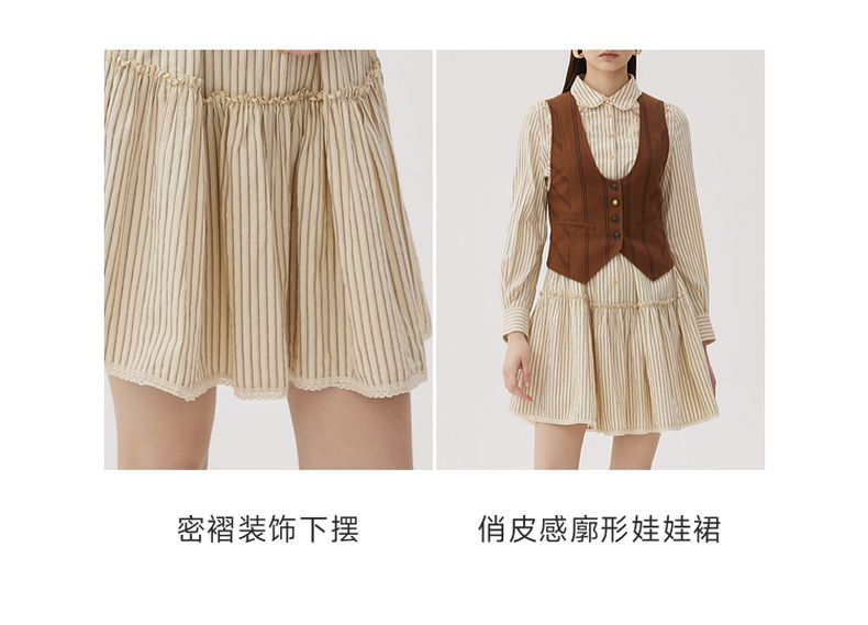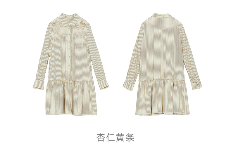 谜底衬衫式连衣裙长袖2024秋新品通勤风条纹宽松直筒裙243ML1045