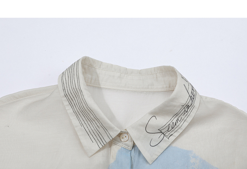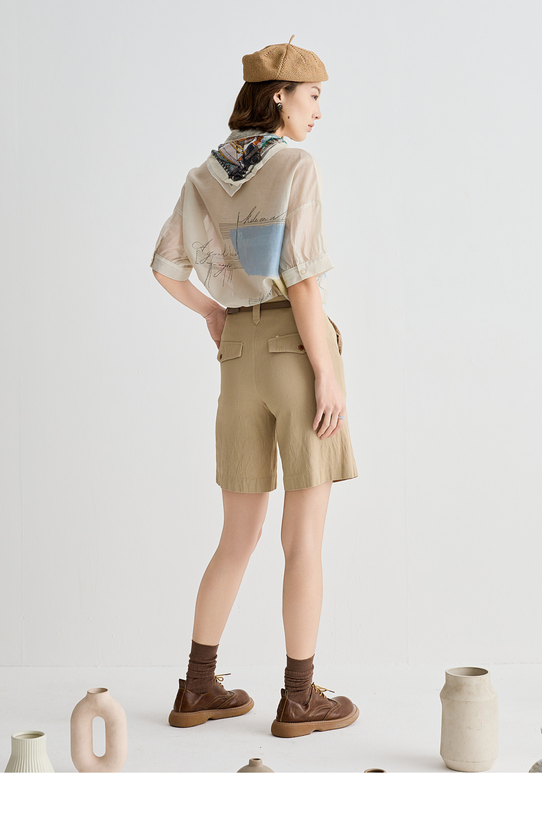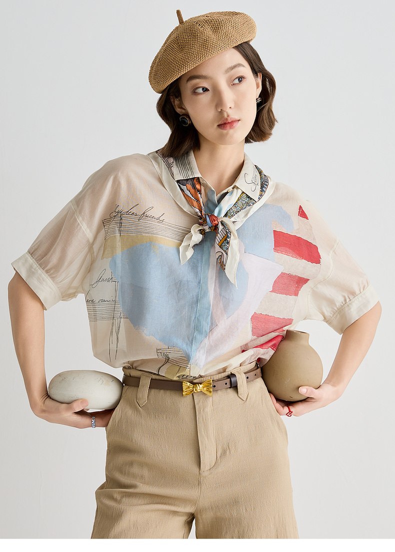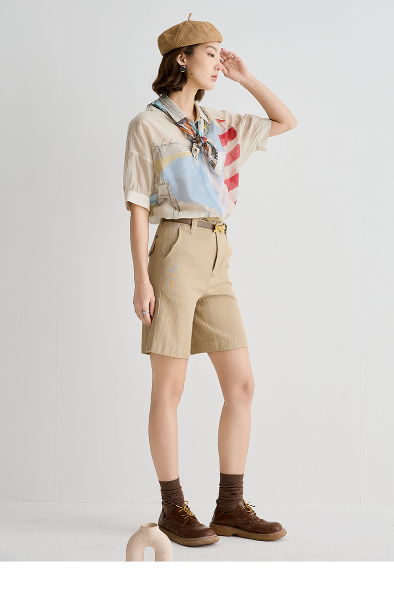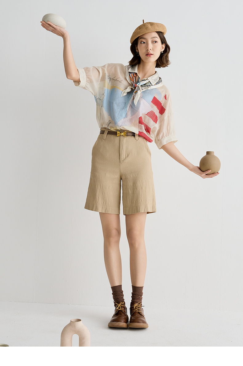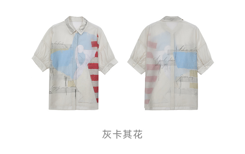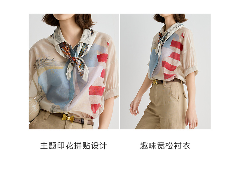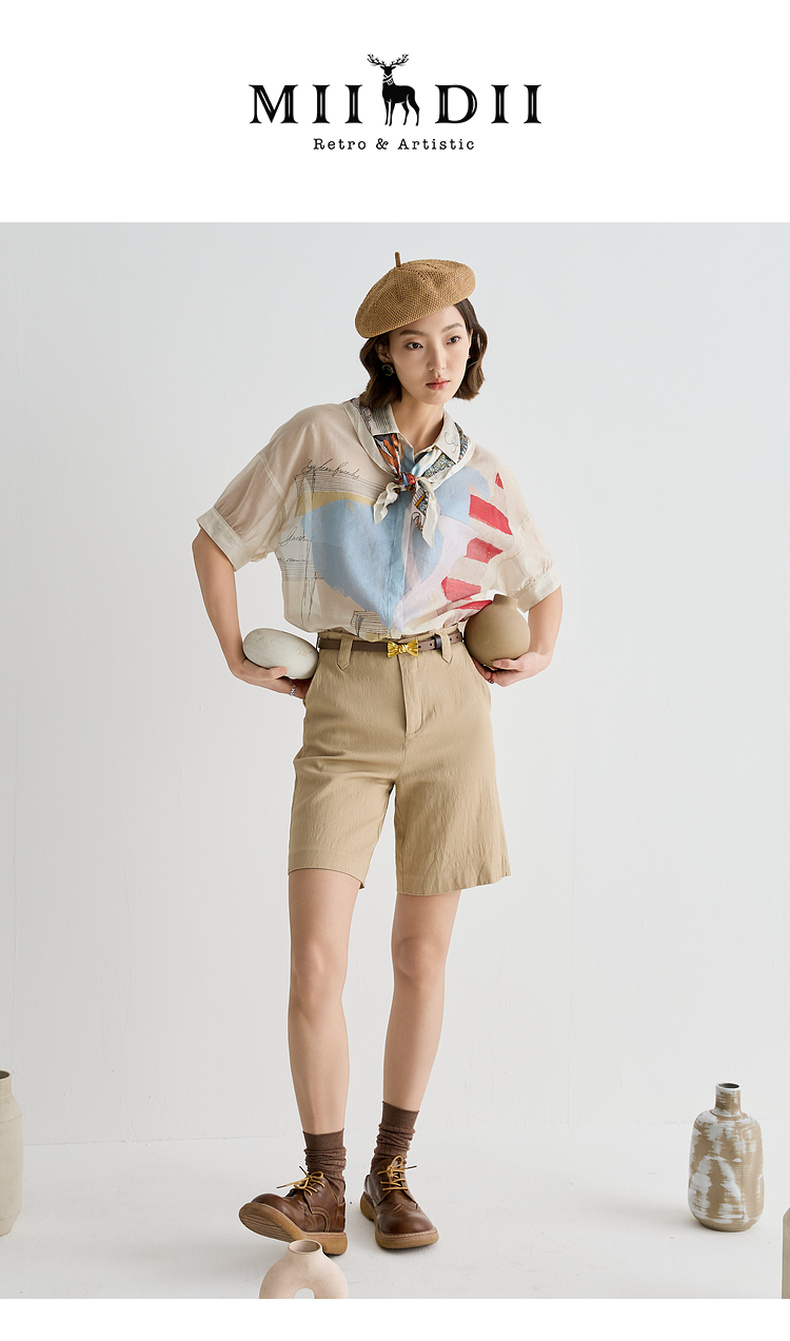 谜底衬衫短袖女2025夏季新品复古风通勤宽松H型中长衬衣252MC0557