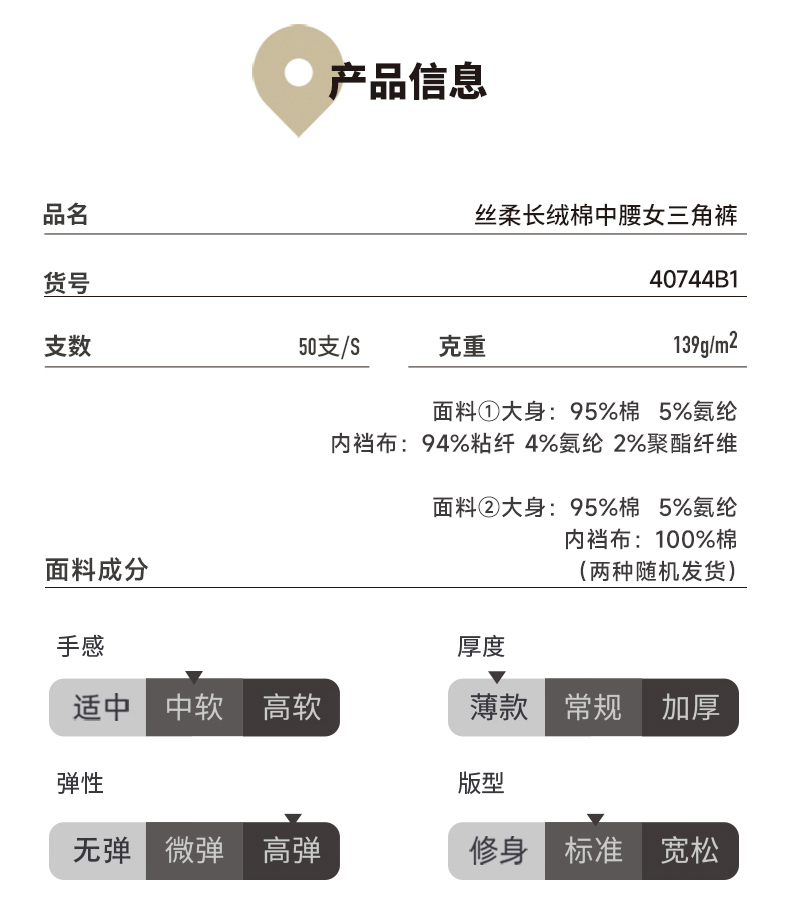 Threegun三枪 【丝柔长绒棉】中腰女士三角内裤-40744B111