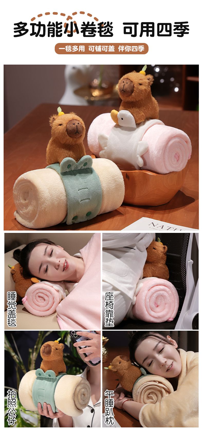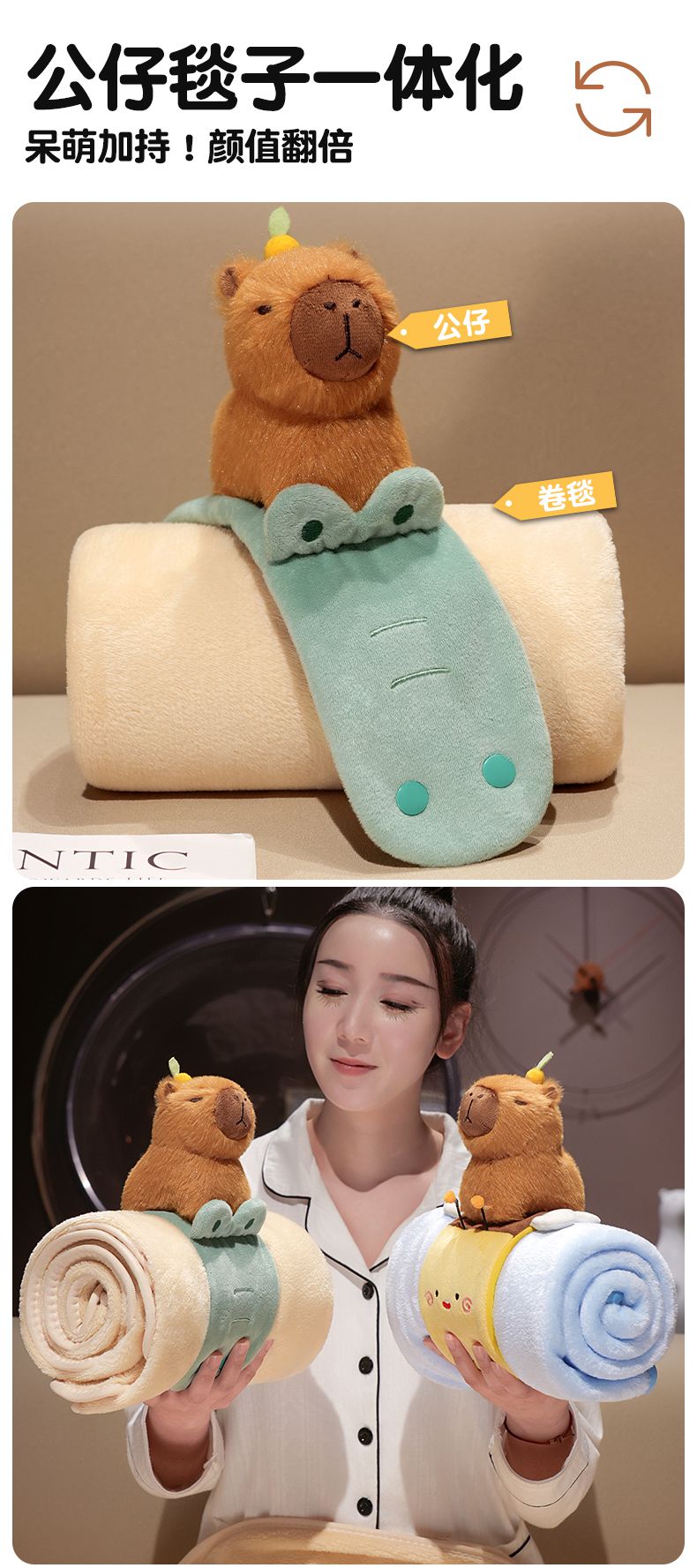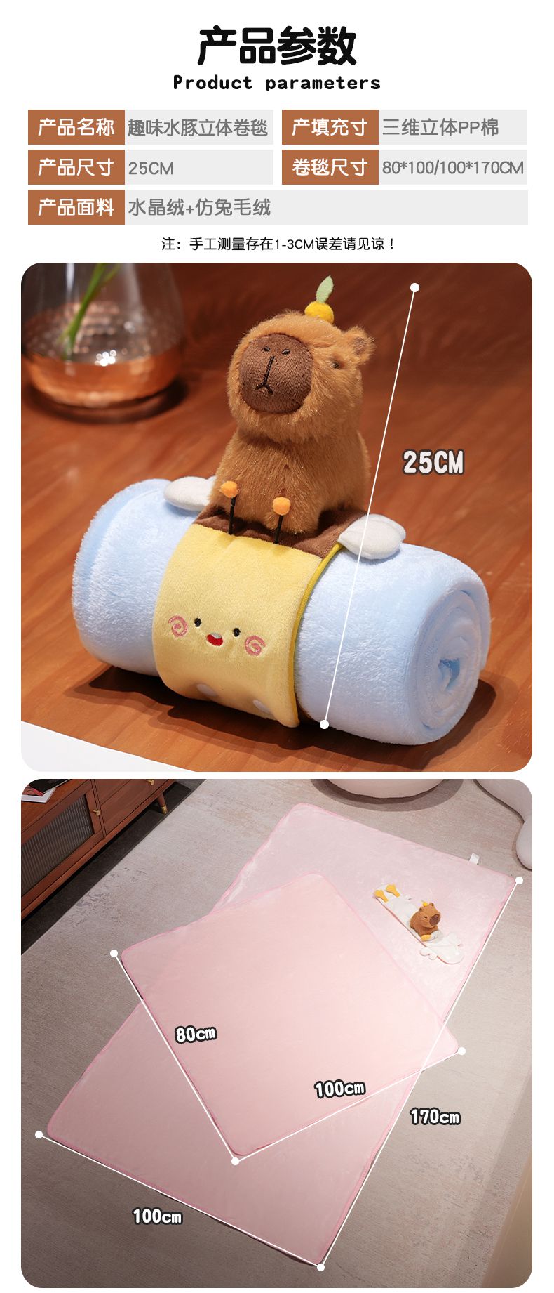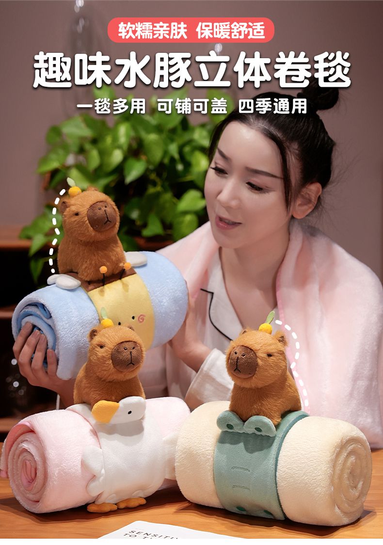 自然醒趣味水豚立体卷毯午休办公室午睡空调毯子儿童珊瑚绒毛毯汽车载QYL