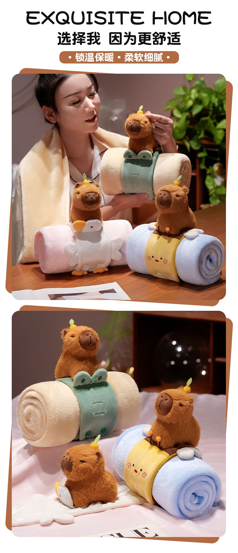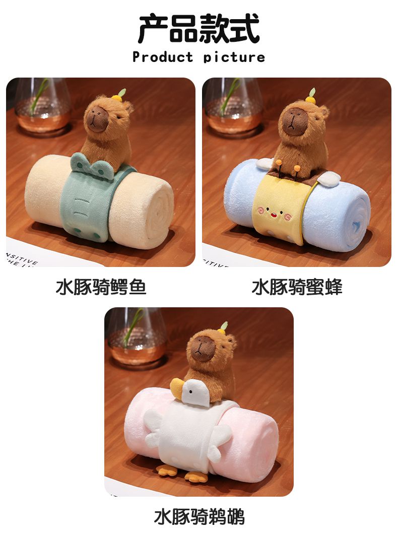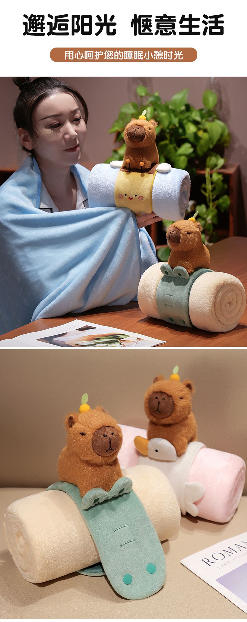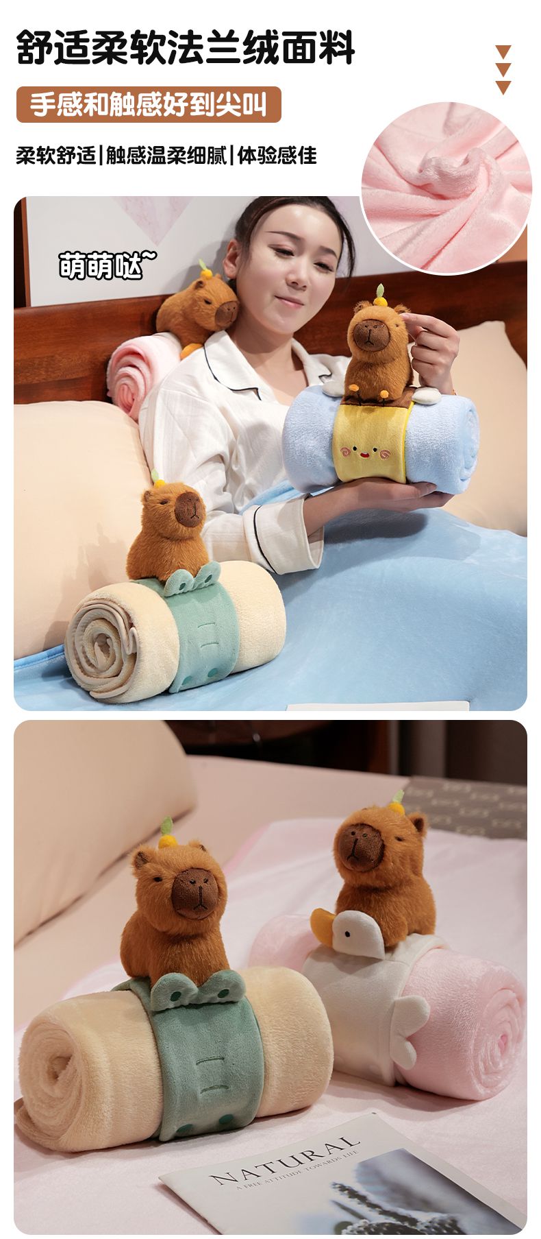自然醒趣味水豚立体卷毯午休办公室午睡空调毯子儿童珊瑚绒毛毯汽车载QYL
