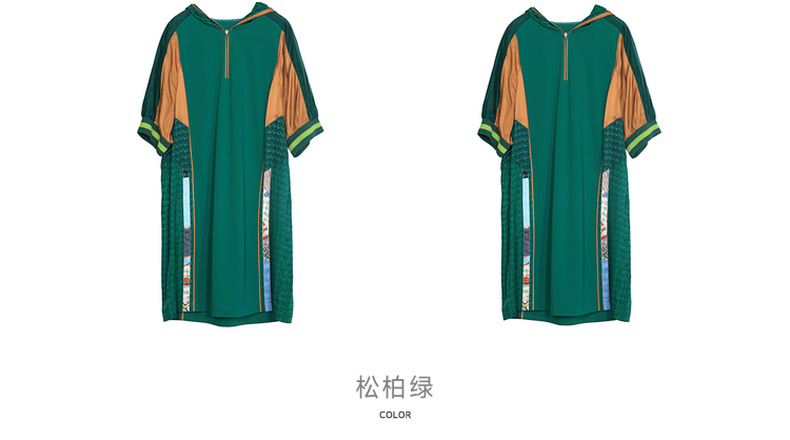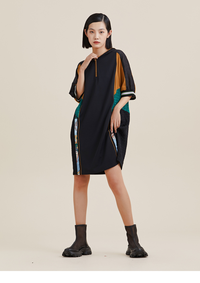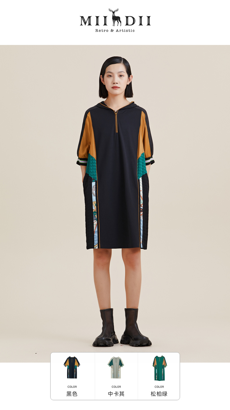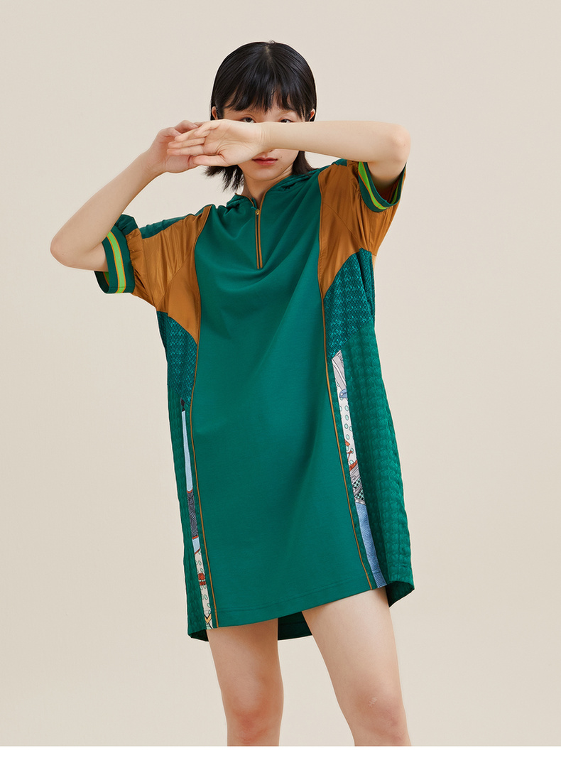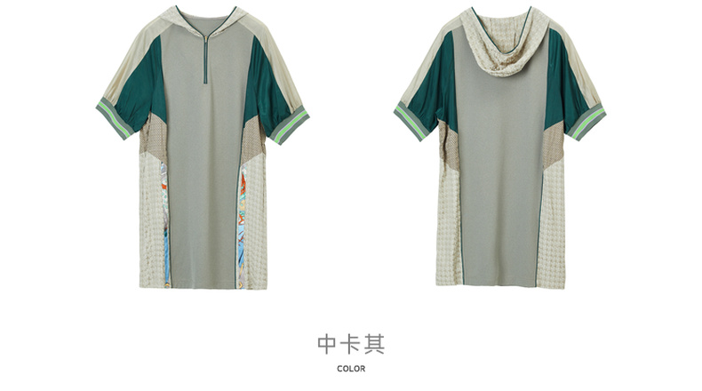 谜底短袖连衣裙2022夏季新款轻时尚撞色拼接休闲连帽225ML6046