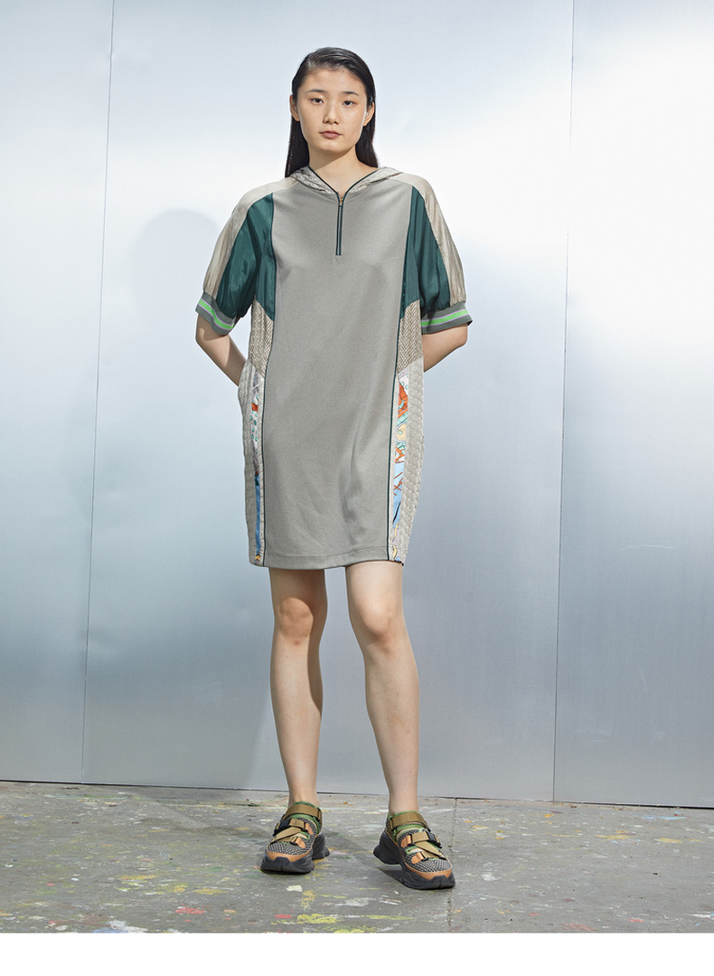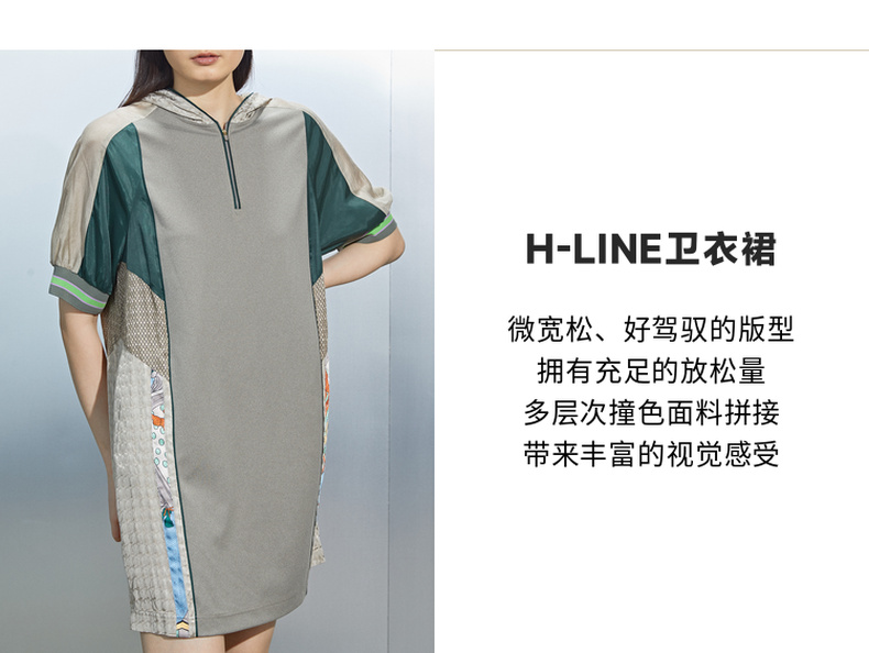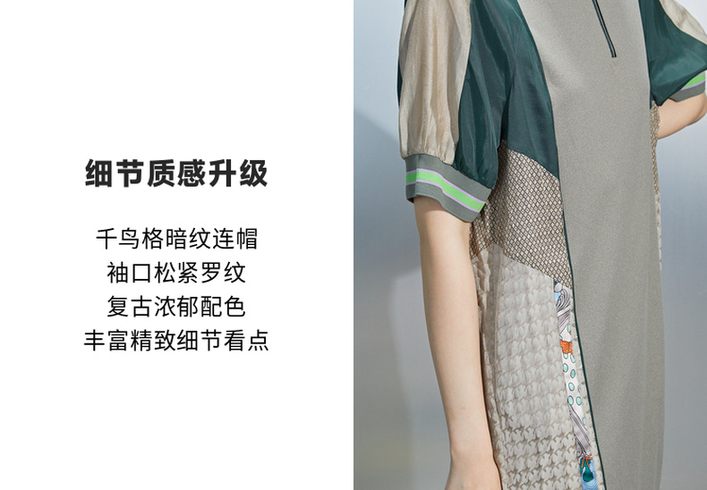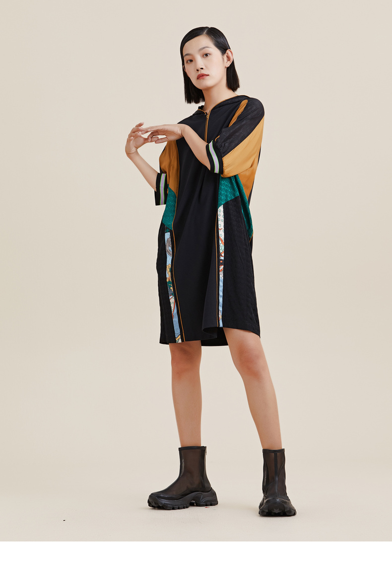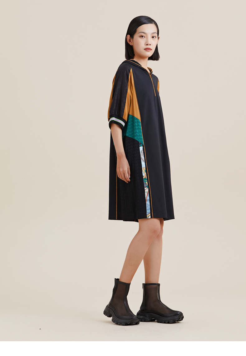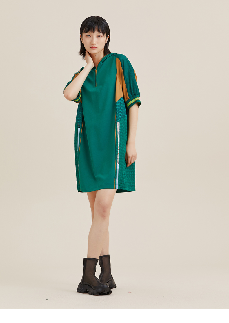 谜底短袖连衣裙2022夏季新款轻时尚撞色拼接休闲连帽225ML6046