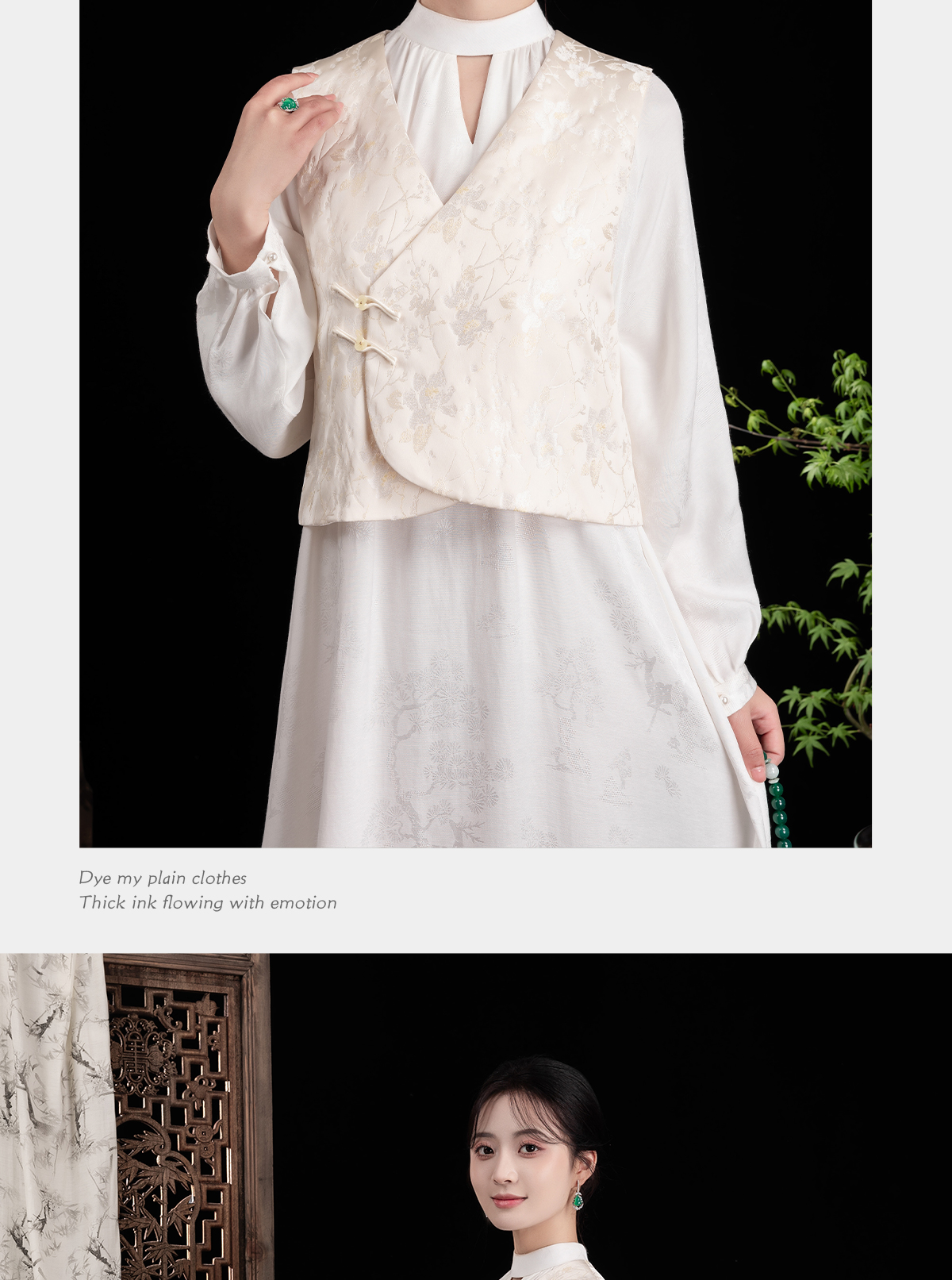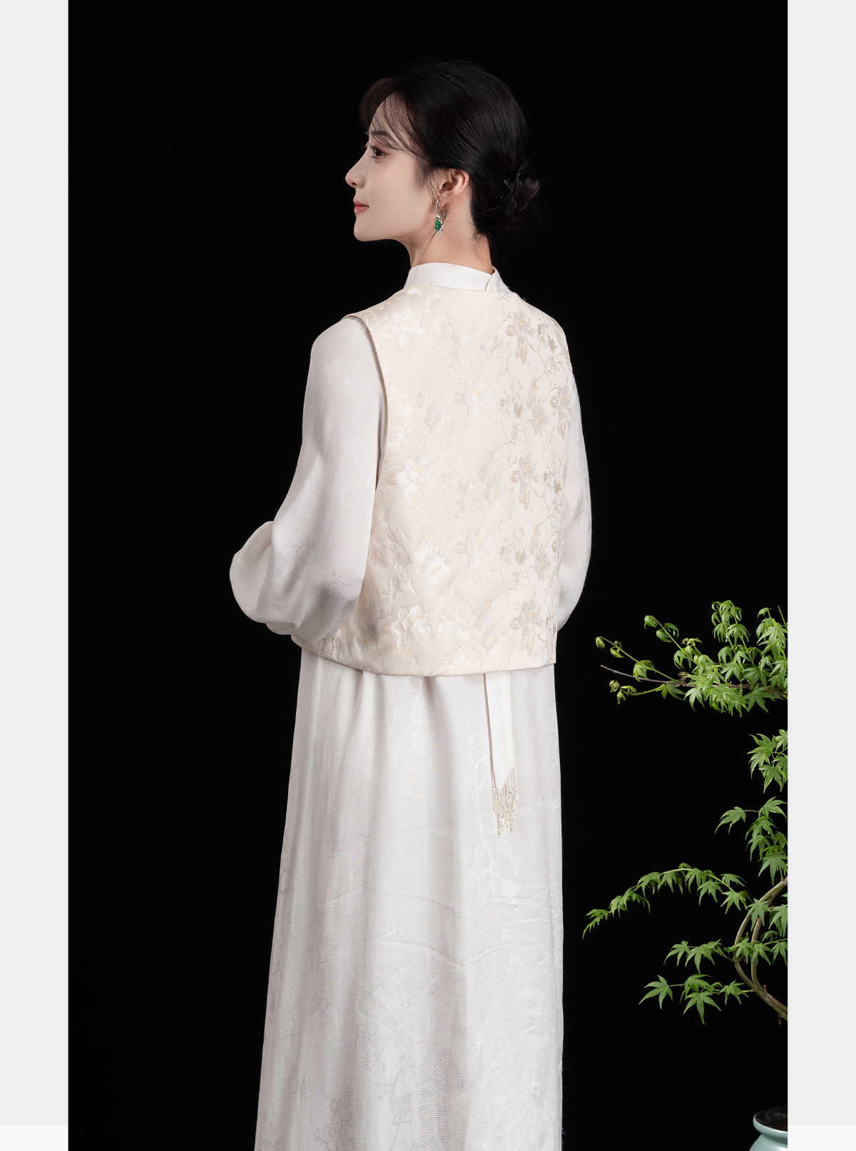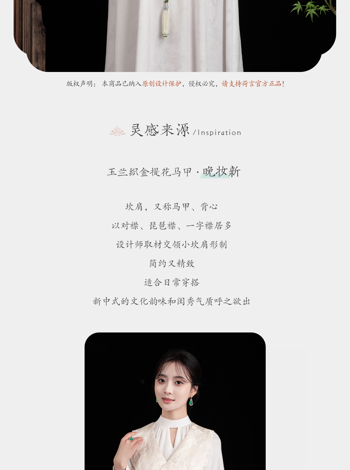 荷言GL 晚妆新 原创新中式改良坎肩马甲玉兰织金提花背心国风 商品图4