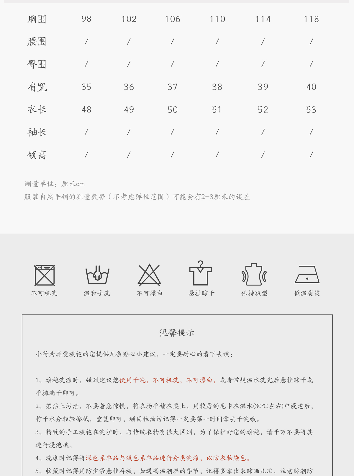 3、规格、尺码等;