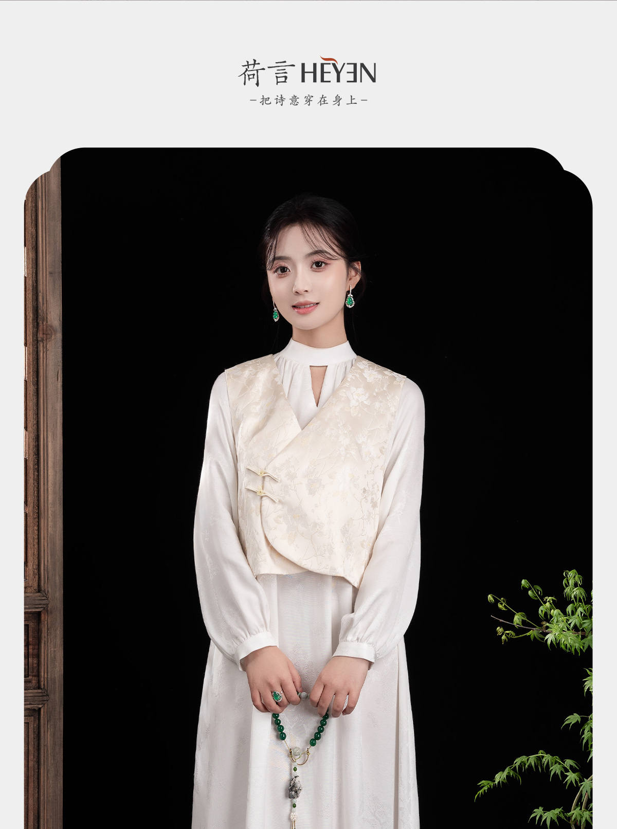 荷言GL 晚妆新 原创新中式改良坎肩马甲玉兰织金提花背心国风 商品图0