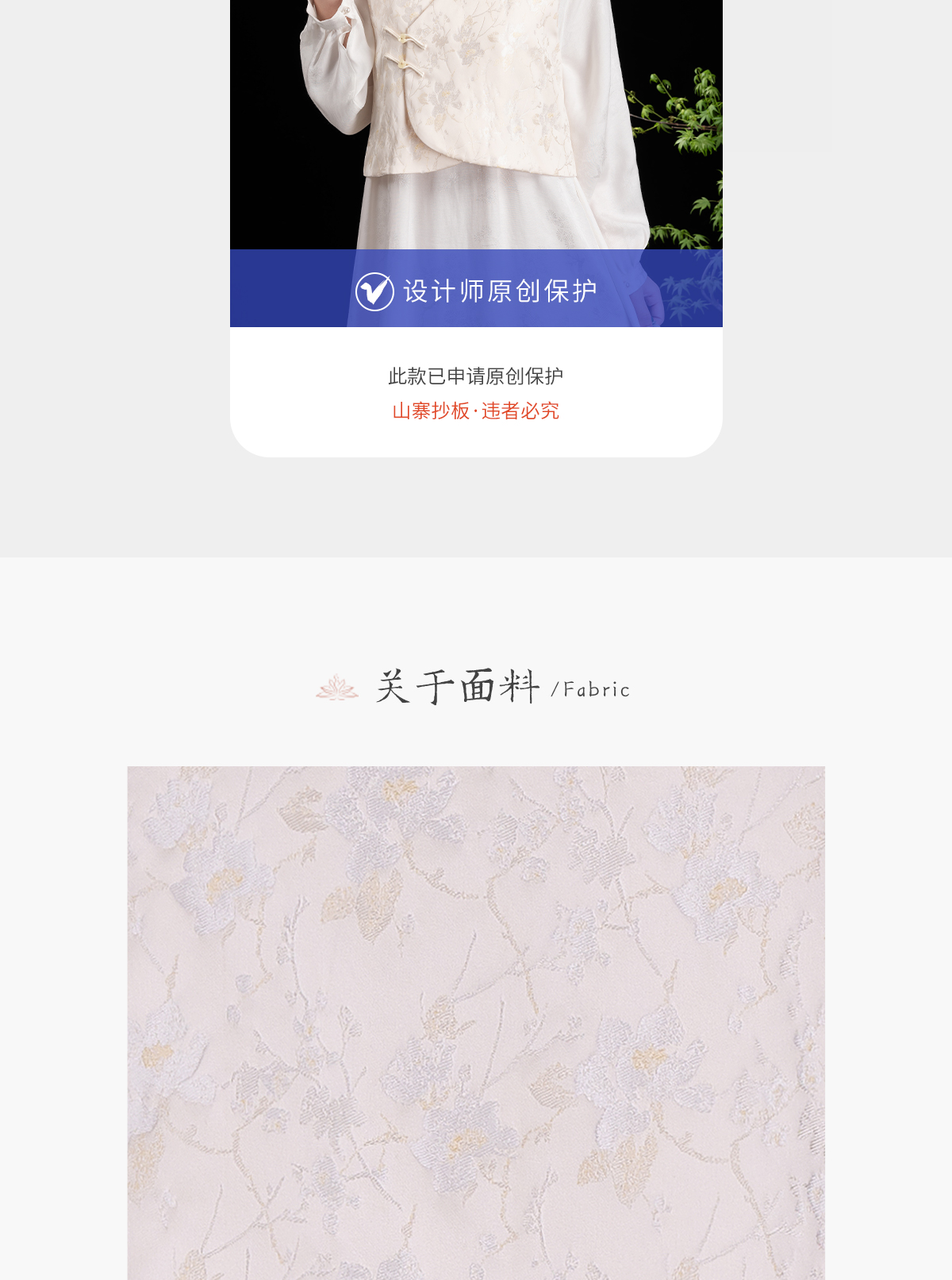 2、细节展示:材质、工艺、做工等;