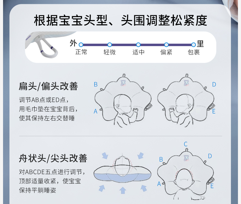 【宝宝安睡】嫚熙婴儿小贝壳定型枕0到6个月新生宝宝纠正头型防偏头枕