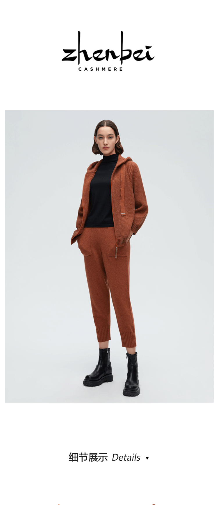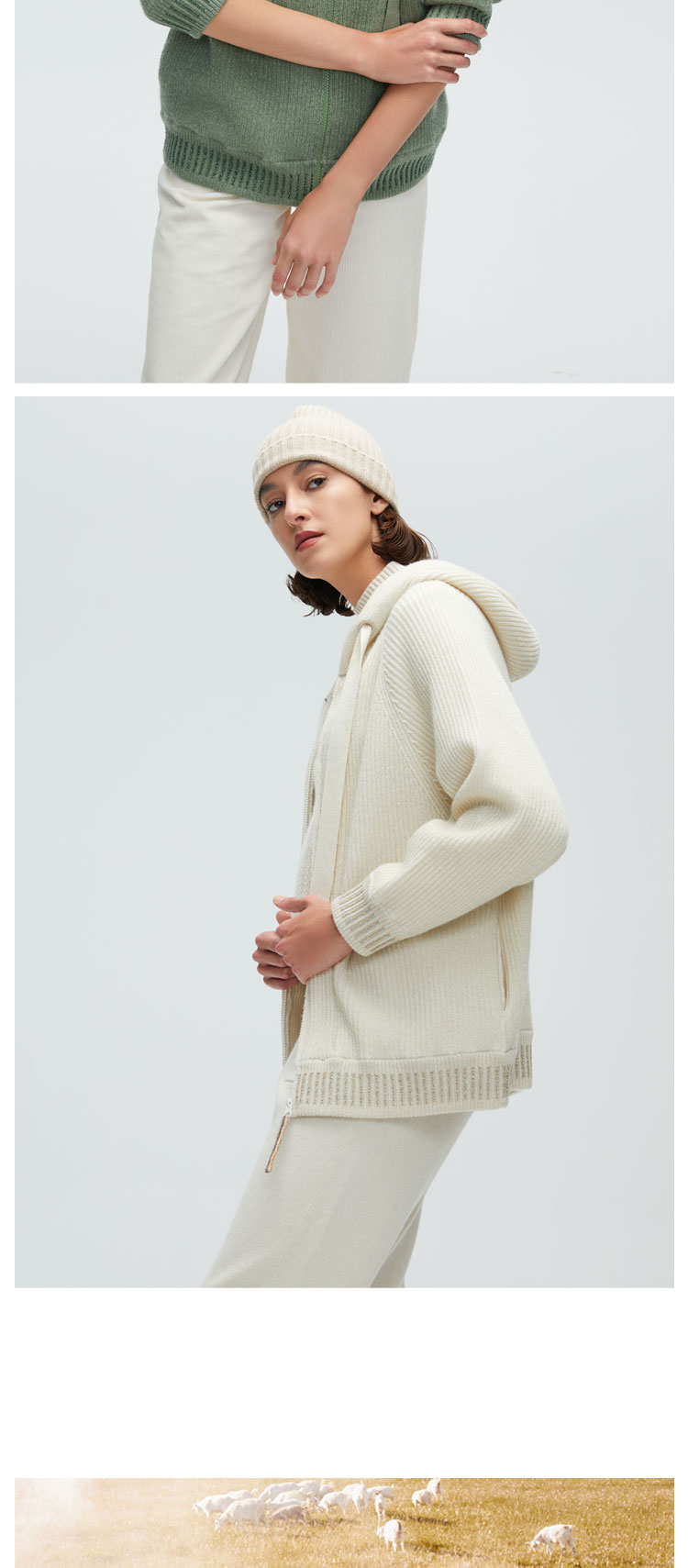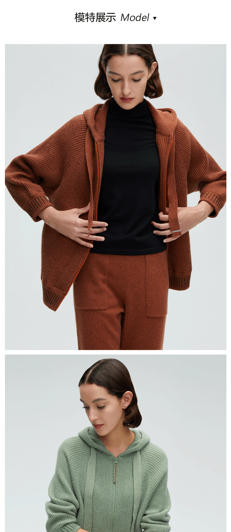 珍贝带帽女拉链开衫H61082