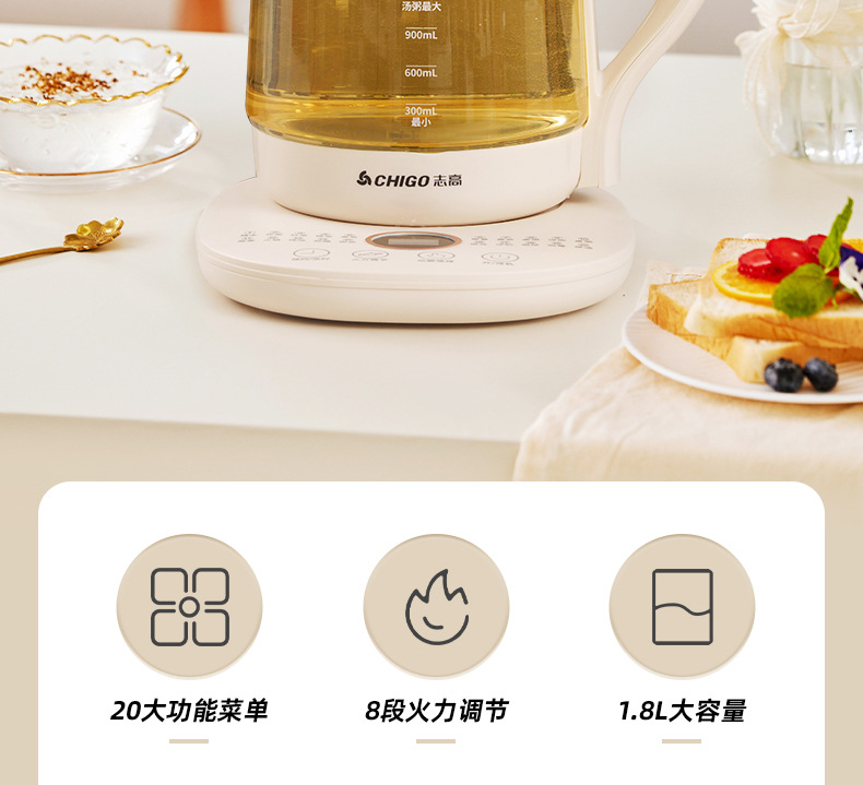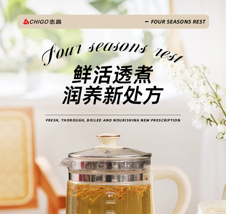 【鲜活透煮养生壶】家用多功能智能恒温养生壶,炖煮双全加厚玻璃,304食品用不锈钢发热盘,一锅多用电蒸锅小家电养生壶QQ