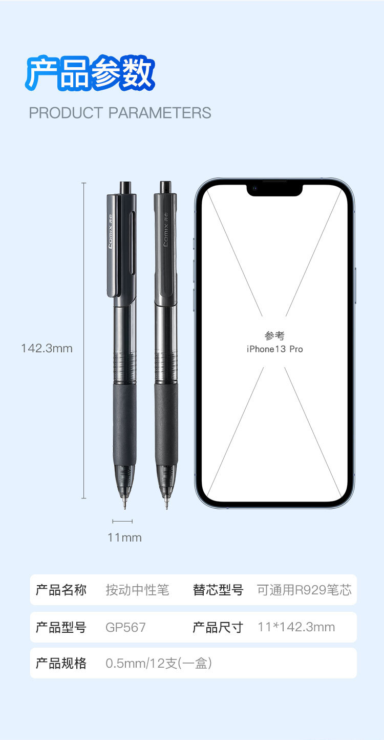 齐心 GP567 按动中性笔 精钢尖锥笔头 0.5mm 啫喱笔碳素笔黑色