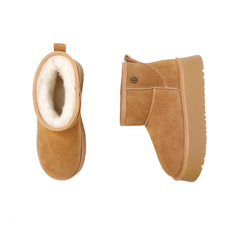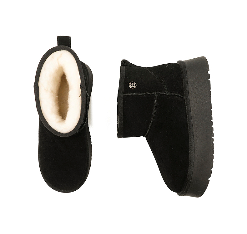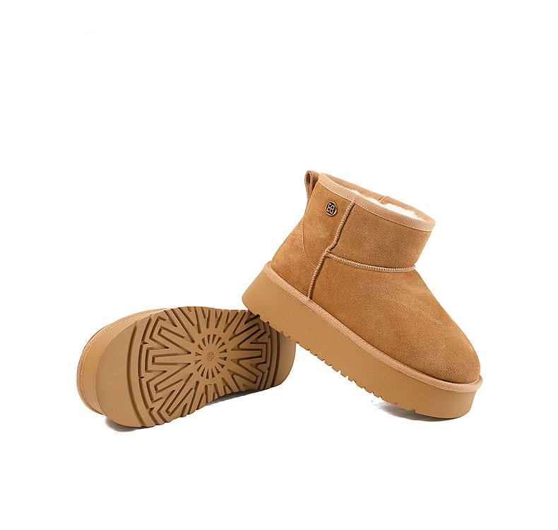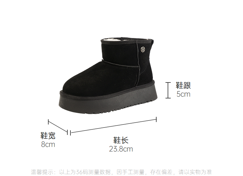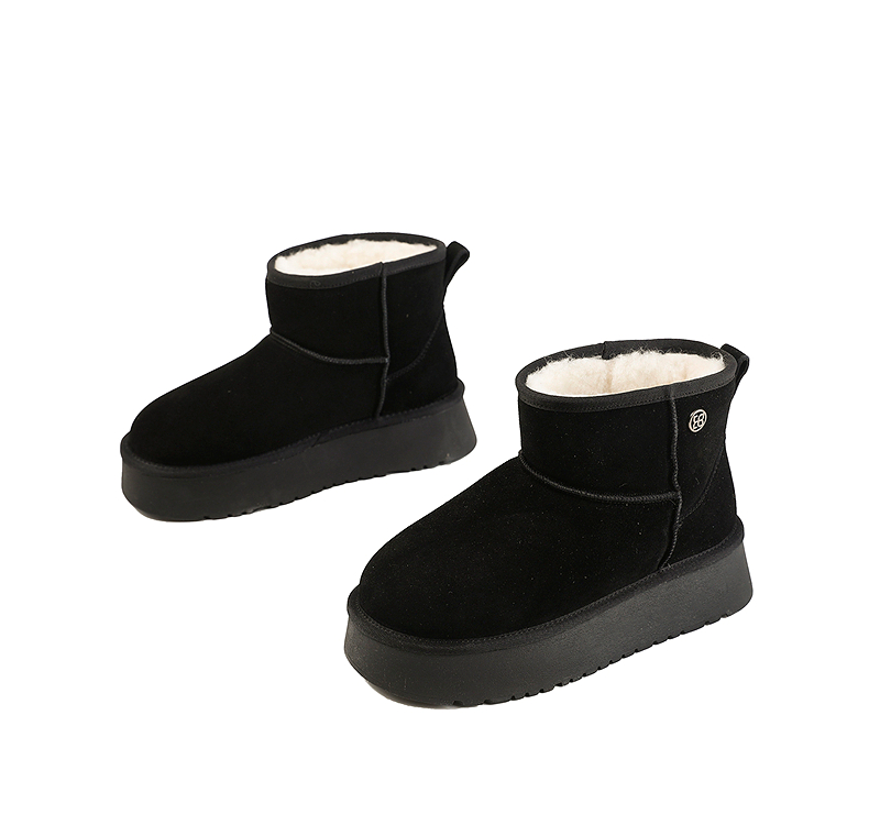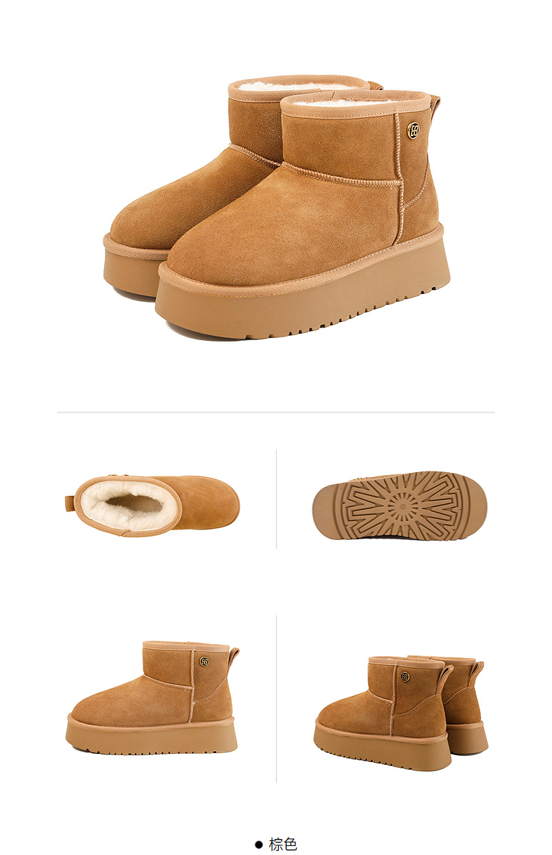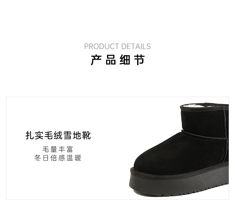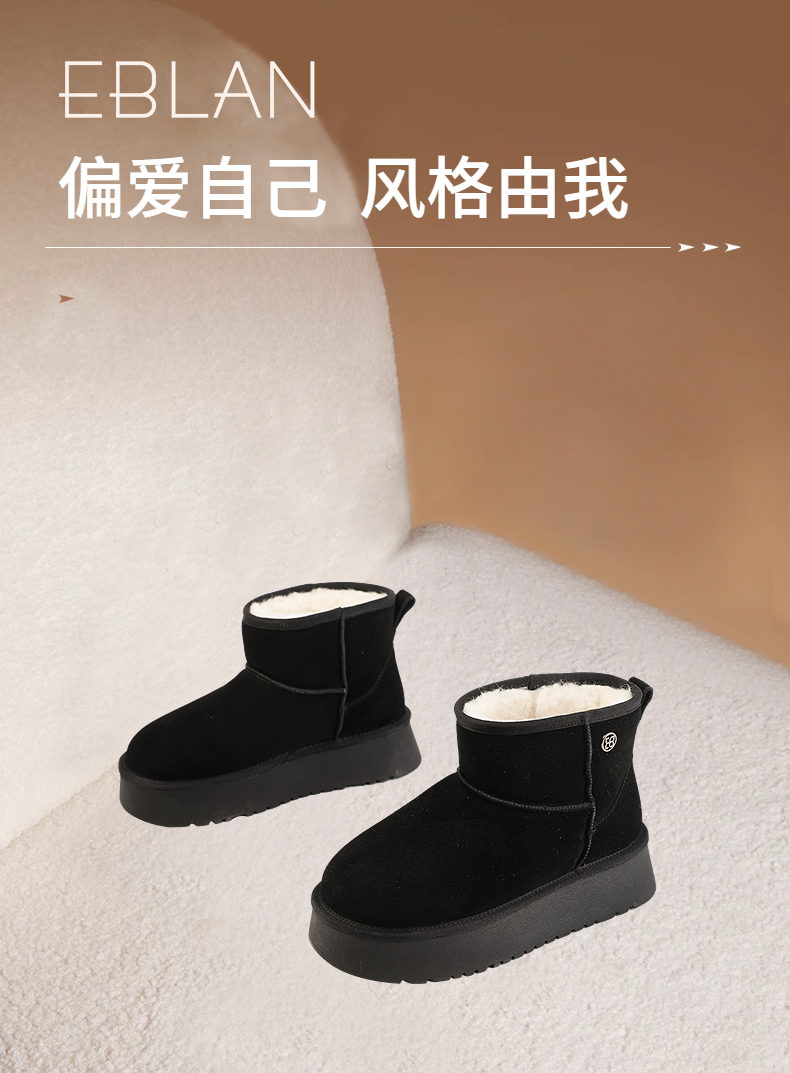 伊伴冬季经典基础百搭纯色短筒厚底雪地靴B25703601