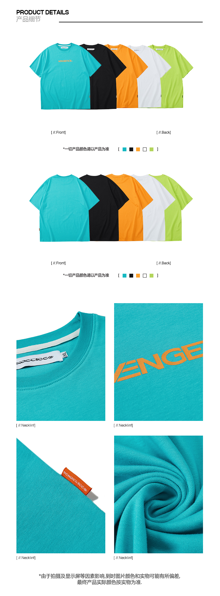 FPA(VENGETICE) 纯棉宽松短袖男简约百搭夏季国潮牌情侣装半袖T恤