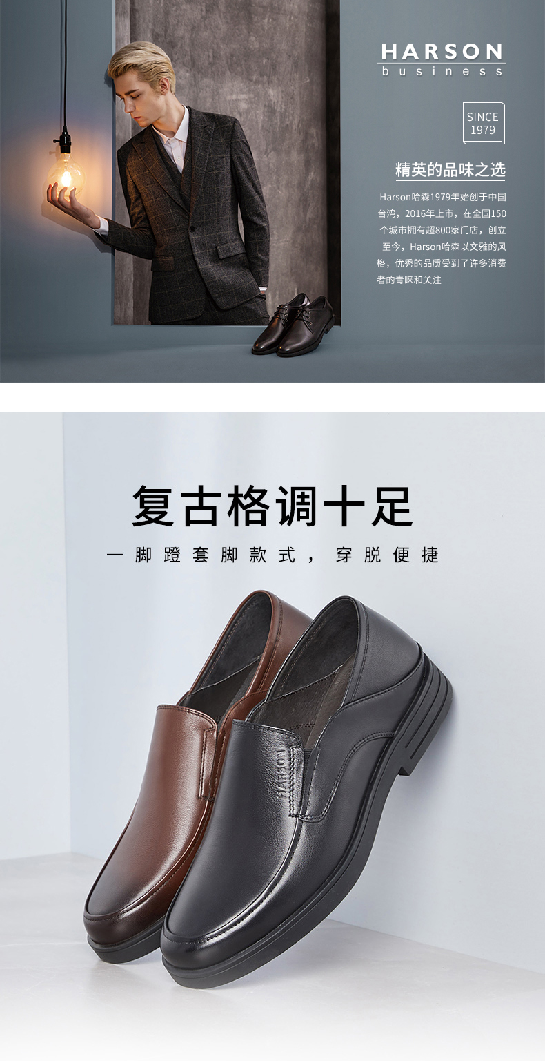 哈森男鞋春季套脚一脚蹬商务休闲皮鞋英伦正装鞋子MS26602