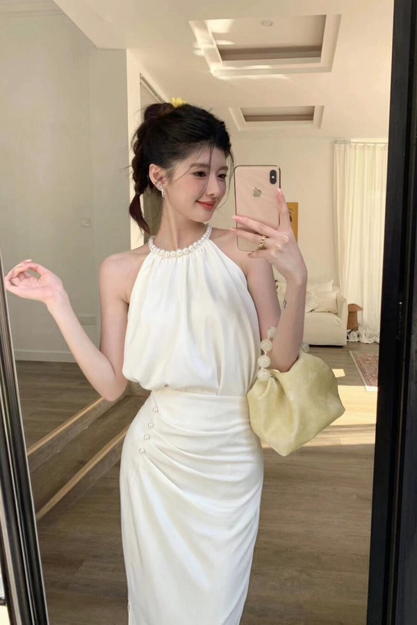 ELLA JADE 露肩挂脖无袖上衣+绸缎面半身裙 20441