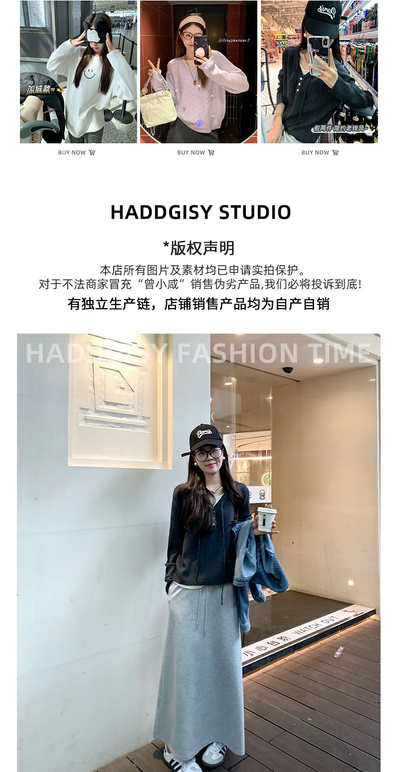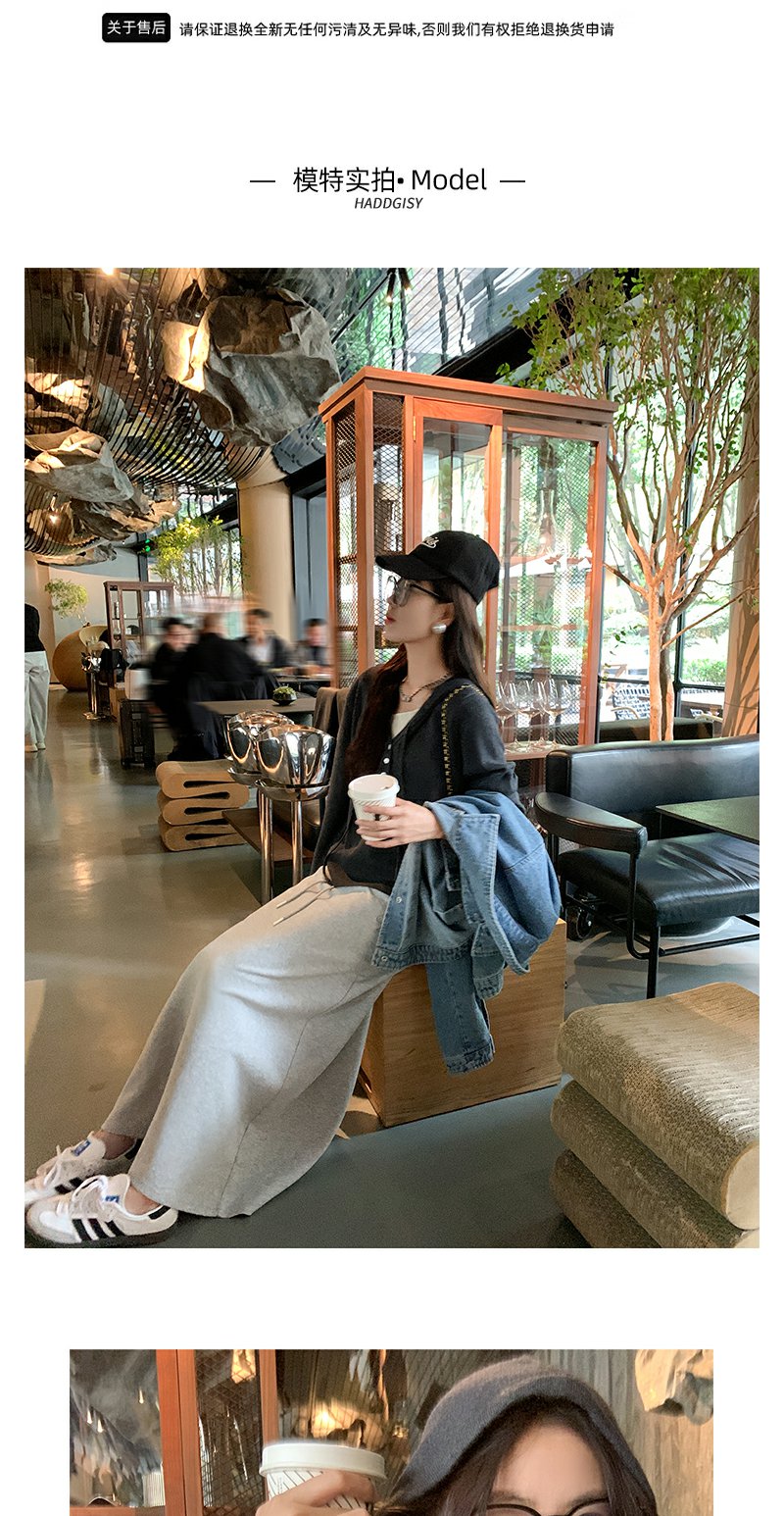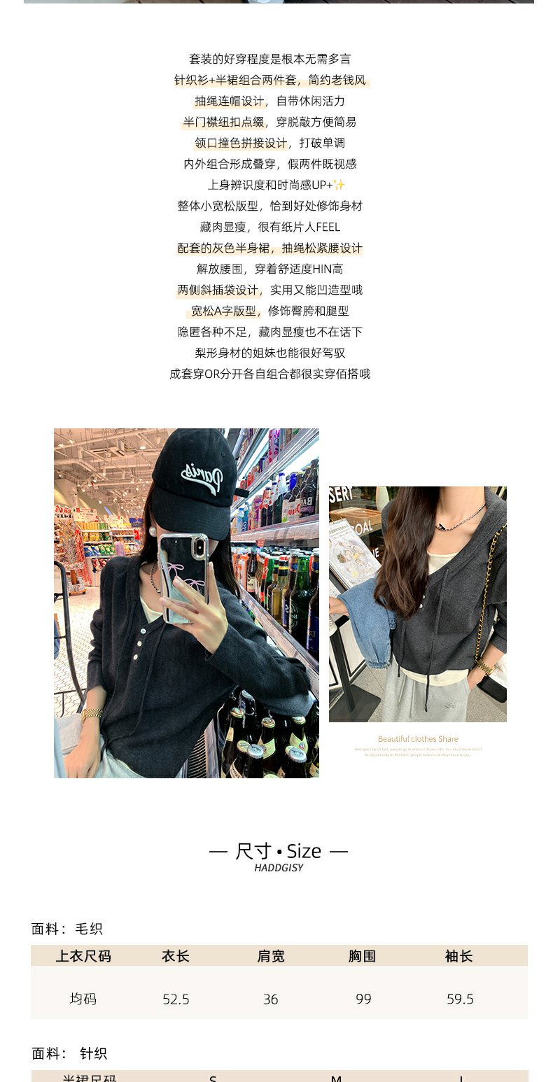 <曾小咸推荐>假两件灰色连帽针织衫半身裙