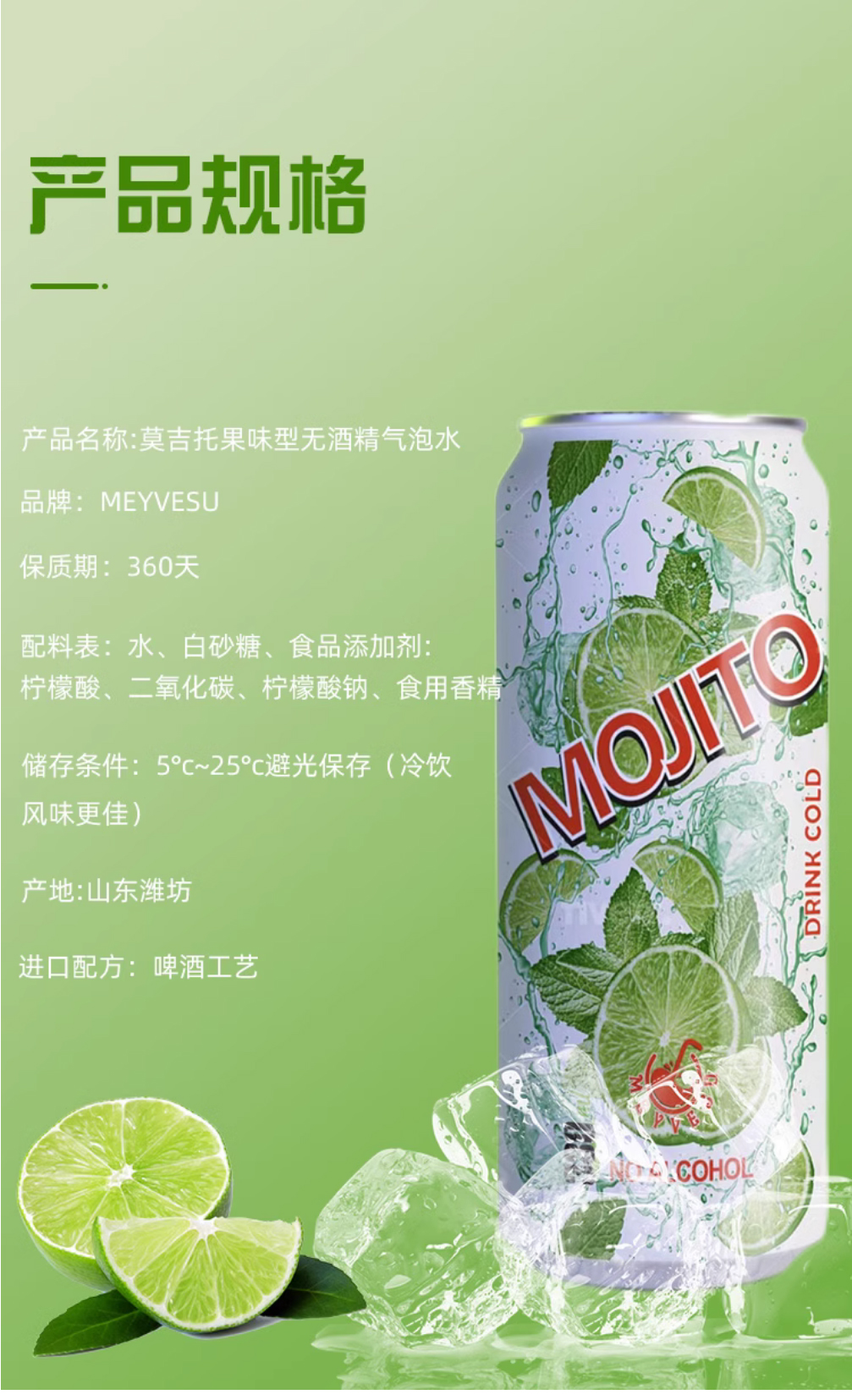 【品名】MEYVESU莫吉托果味型无酒精气泡水