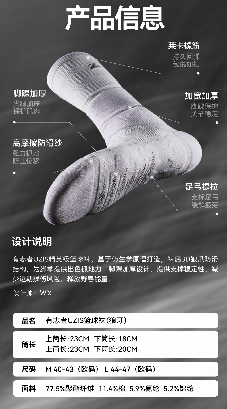 有志者UZIS专业防滑篮球袜男实战训练高帮透气美式精英袜子狼牙