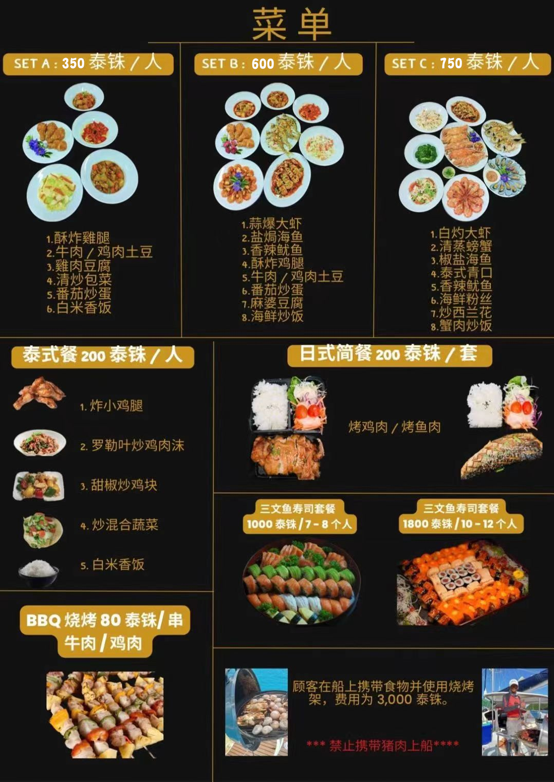 水果,点心,软饮,保险,浮潜用具、沙滩毛巾、桨板,查龙码头双条车费用