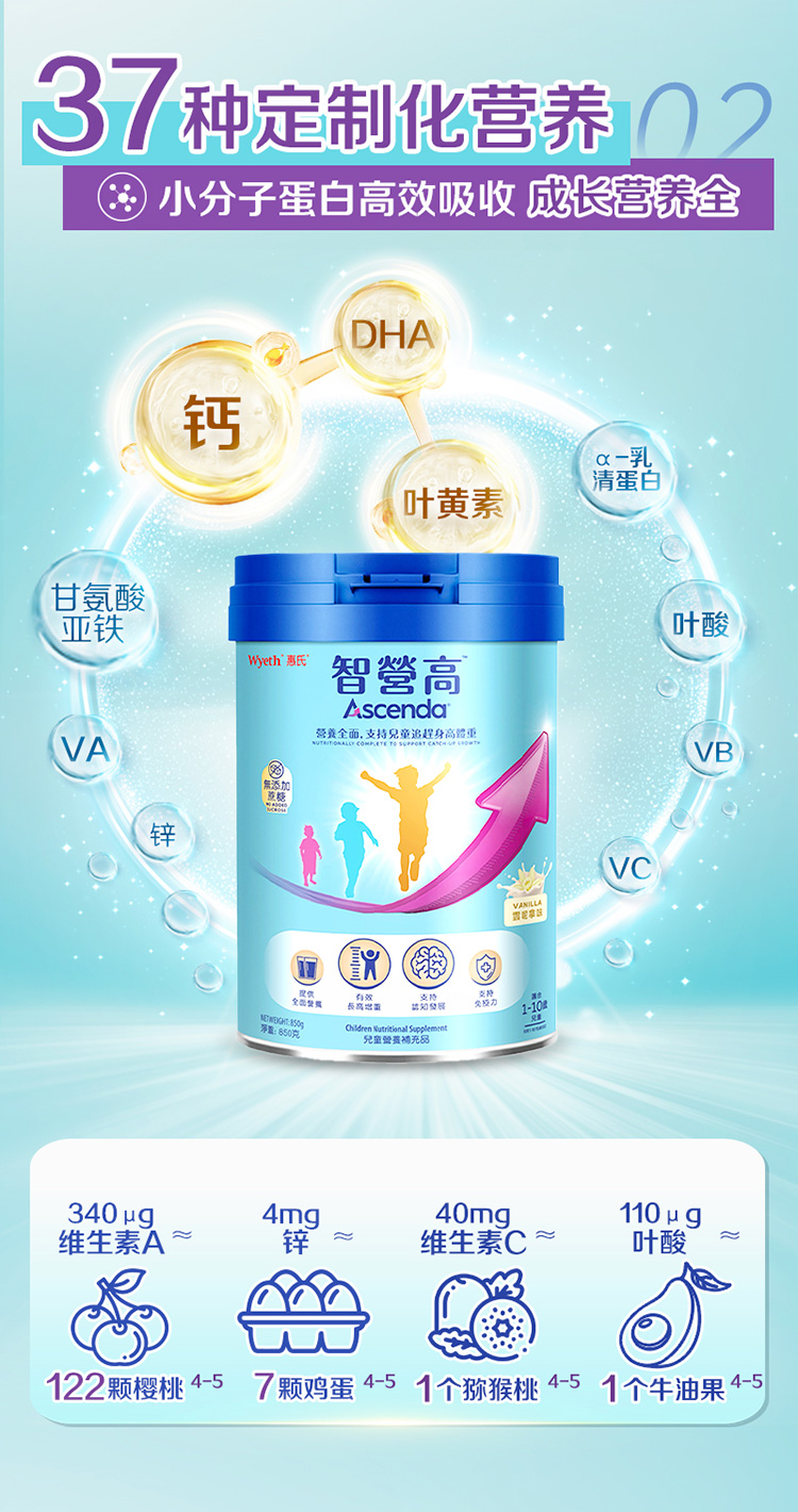 惠氏智营高Ascenda儿童奶粉850g(效期27月10月)