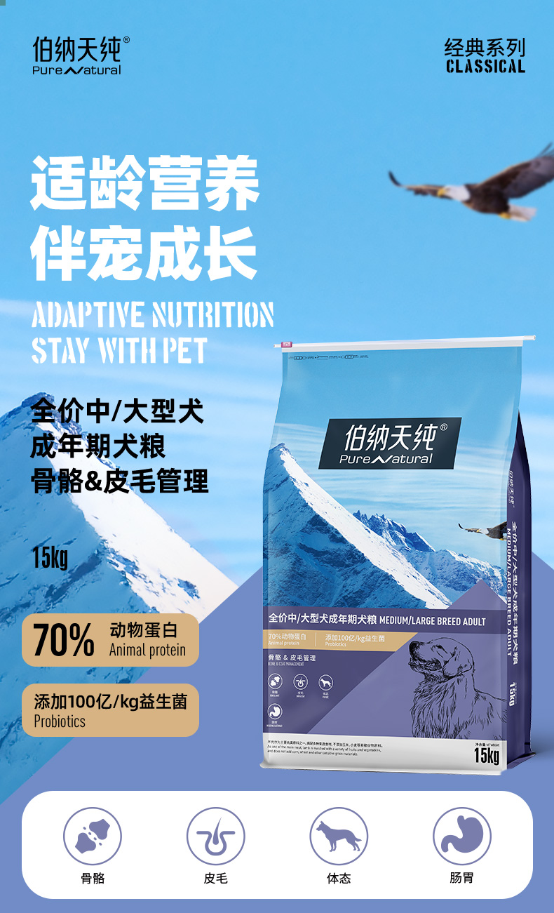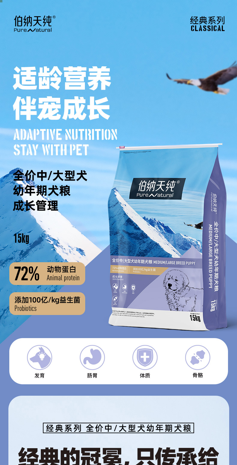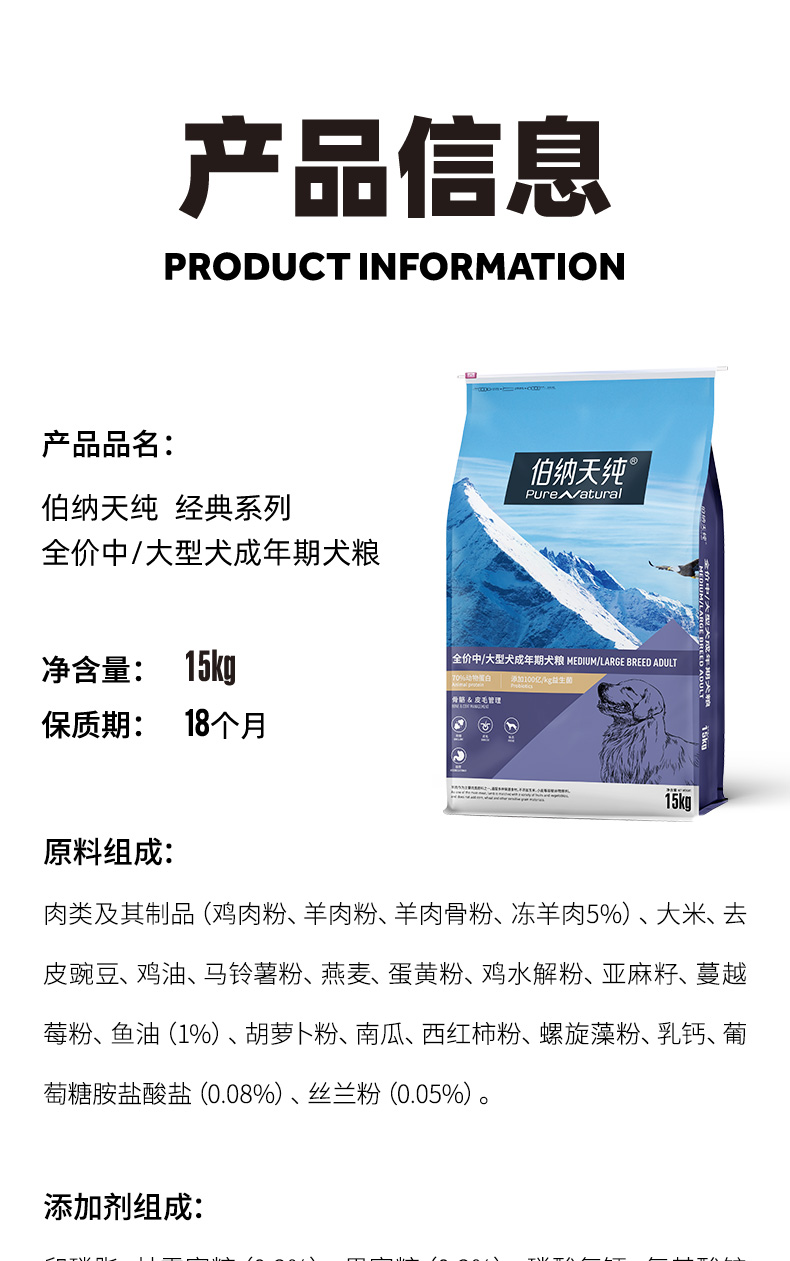 伯纳天纯经典中大型犬幼犬成犬老年犬专用狗粮15kg金毛边牧萨摩耶通用型大袋