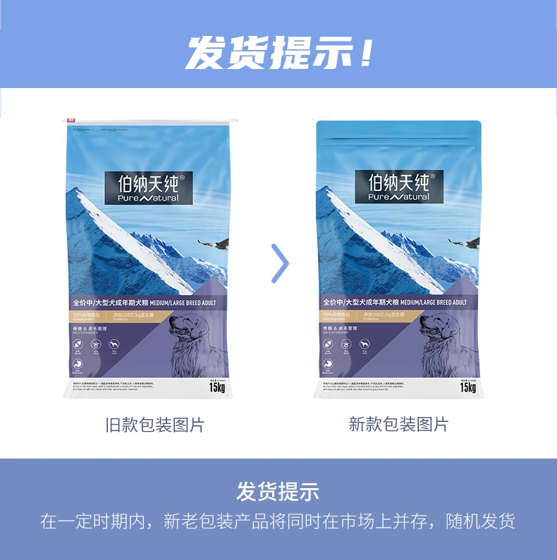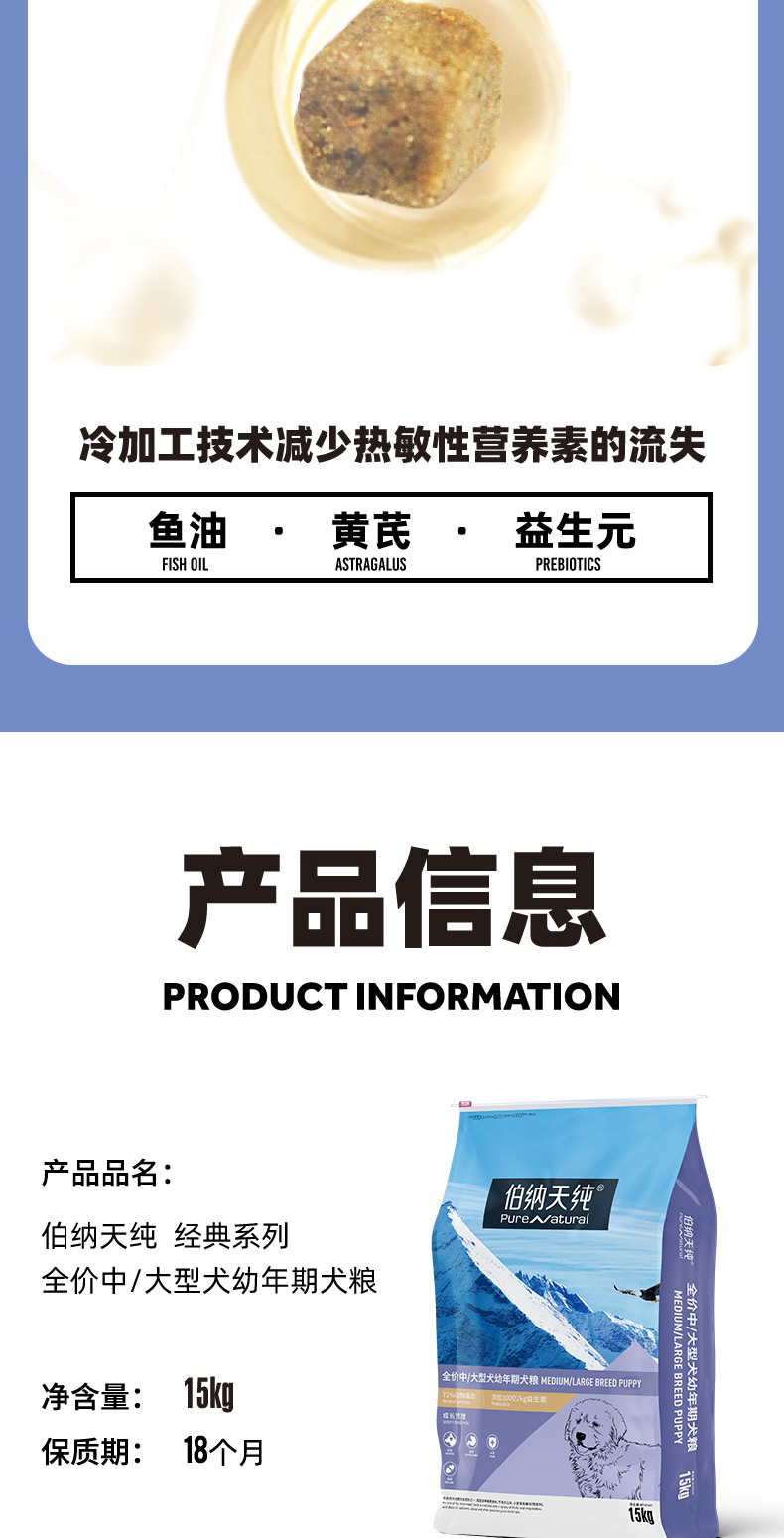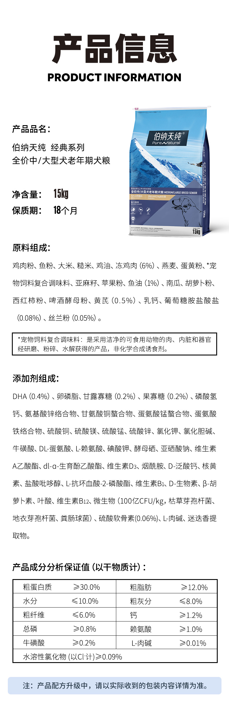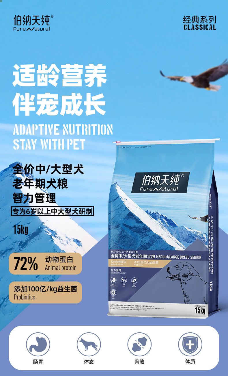 伯纳天纯经典中大型犬幼犬成犬老年犬专用狗粮15kg金毛边牧萨摩耶通用型大袋