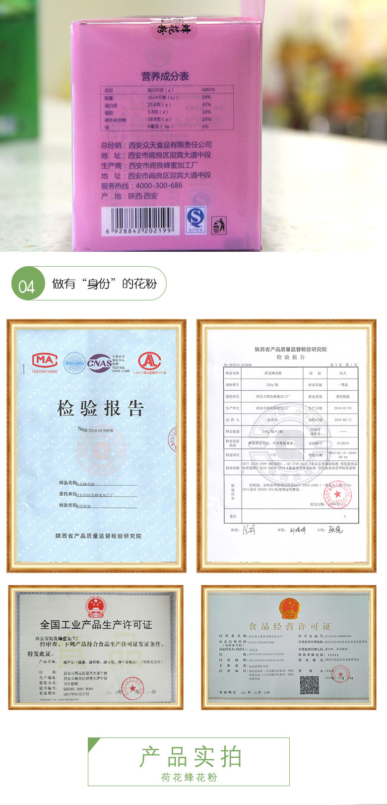 秦岭纯天然新鲜荷花蜂花粉300克