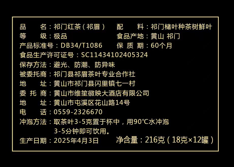 祁门红茶/极品祁眉/216g(18g*12罐)/礼盒装/红茶