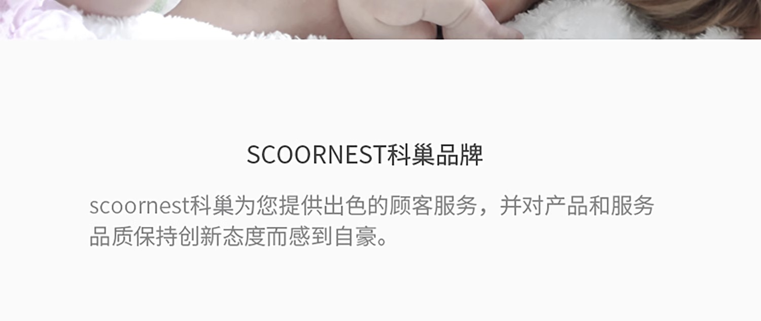 - Scoornest始终秉承给每一位宝宝送去科学的、关心的、创新的成长体验,通过提供商品和服务,使顾客形成守护、发展、巩固这种弥足珍贵的亲情的爱。