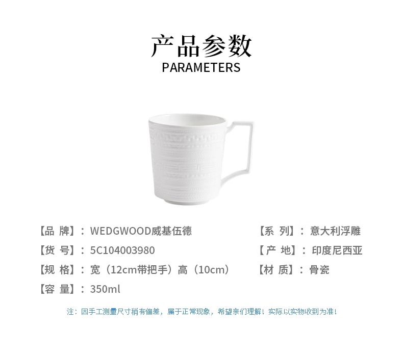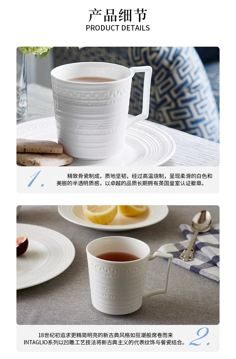 WEDGWOOD威基伍德意大利浮雕骨瓷马克对杯咖啡杯复古杯欧式水杯