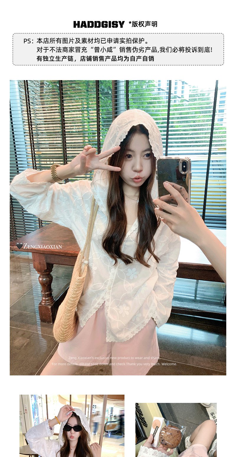 <曾小咸推荐>3.27现货秒杀 !微信超特价!重工蕾丝提花刺绣连帽衬衣 日常189.99 立减110 秒杀79.99!!