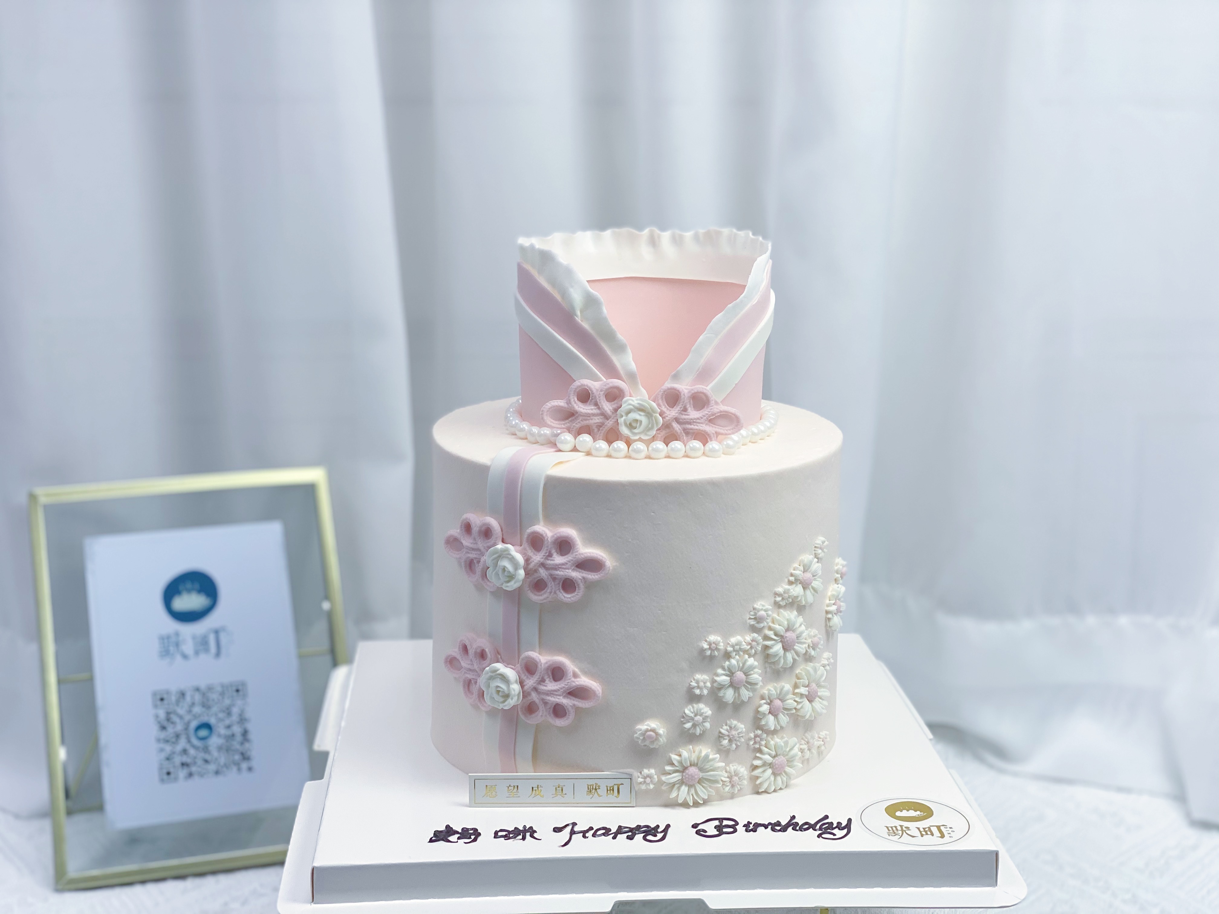 优雅淡粉色旗袍翻糖造型蛋糕