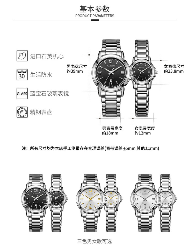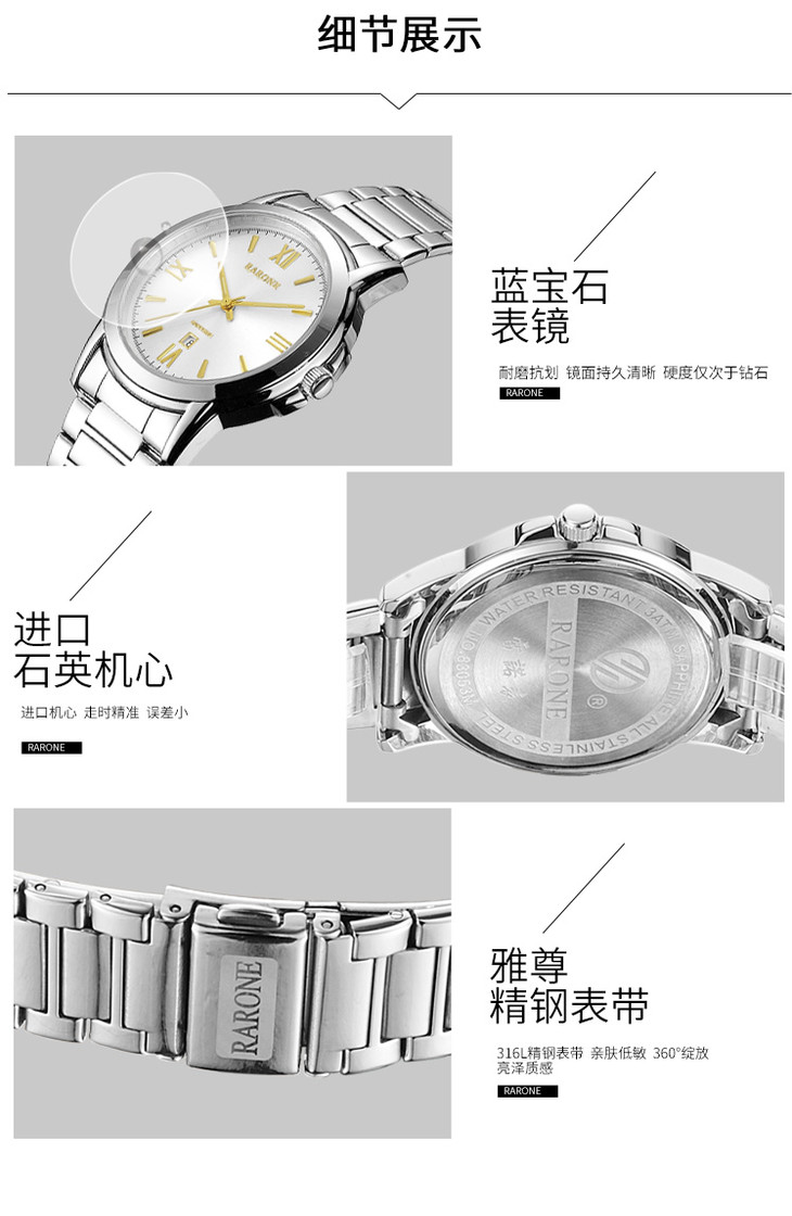 RARONE雷诺表高光系列石英对表82217